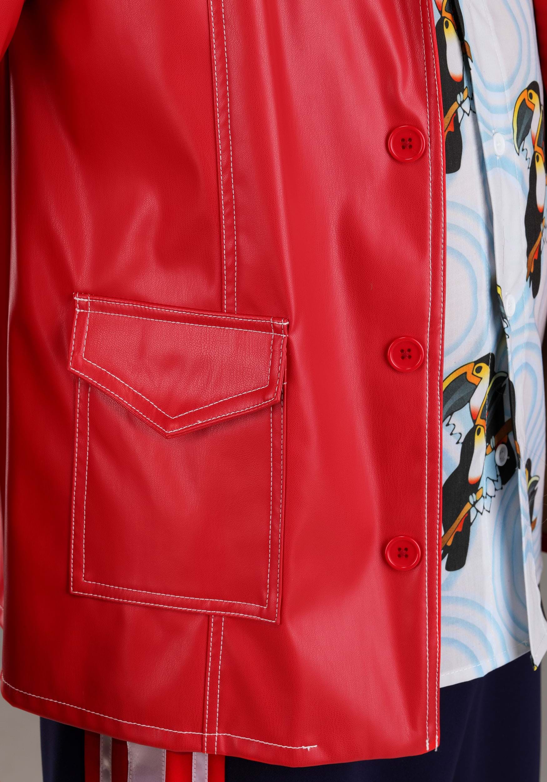 Every piece of this costume is designed to look like Tyler Durden's unforgettable ensemble from Fight Club, so you'll have no trouble stepping into the role of the iconic soap salesman/philosopher/chaos enthusiast. The red faux leather jacket instantly makes you feel like a rebel, since it looks just like the one he wears in the film. The tropical bird-print button-down adds that perfect shot of laid-back confidence.