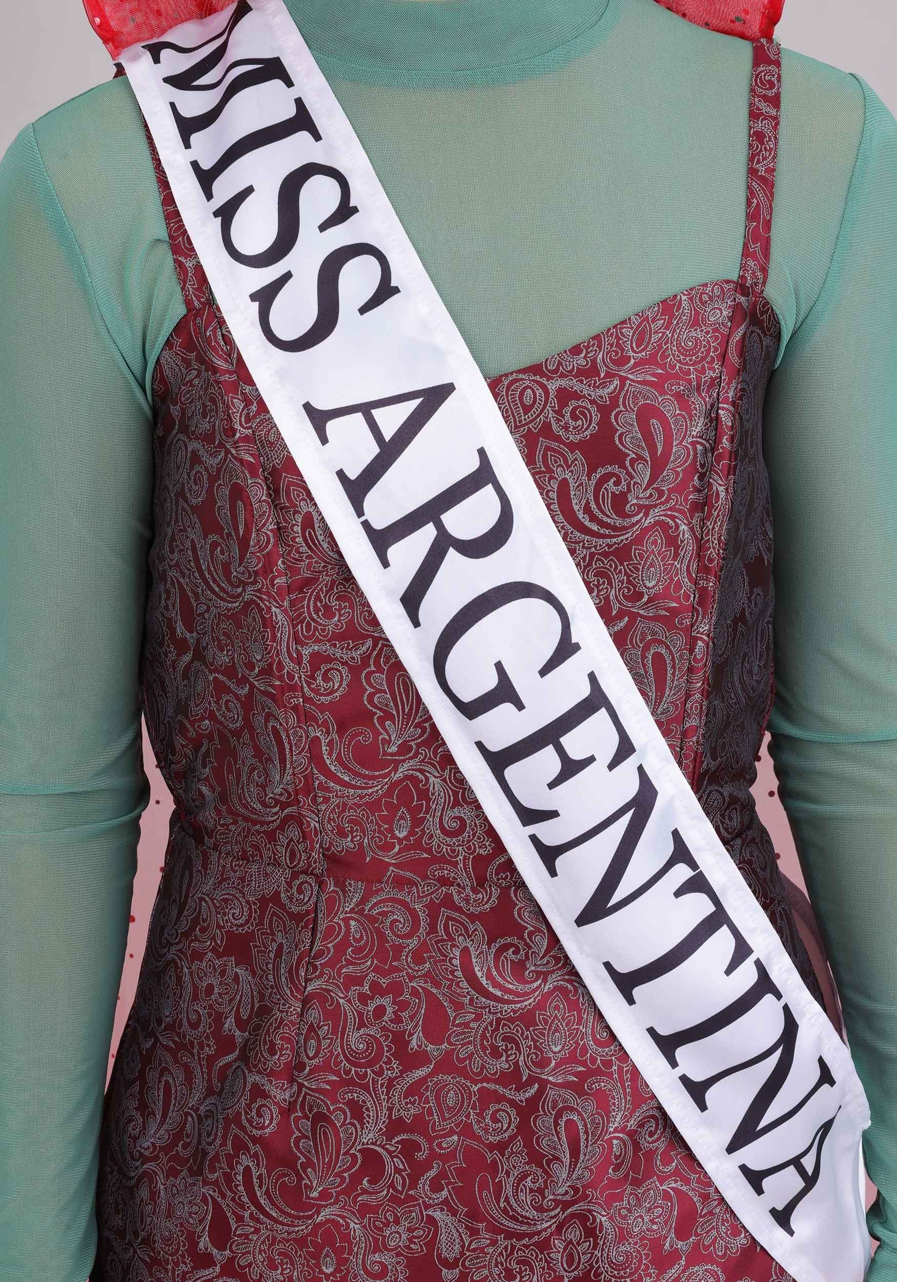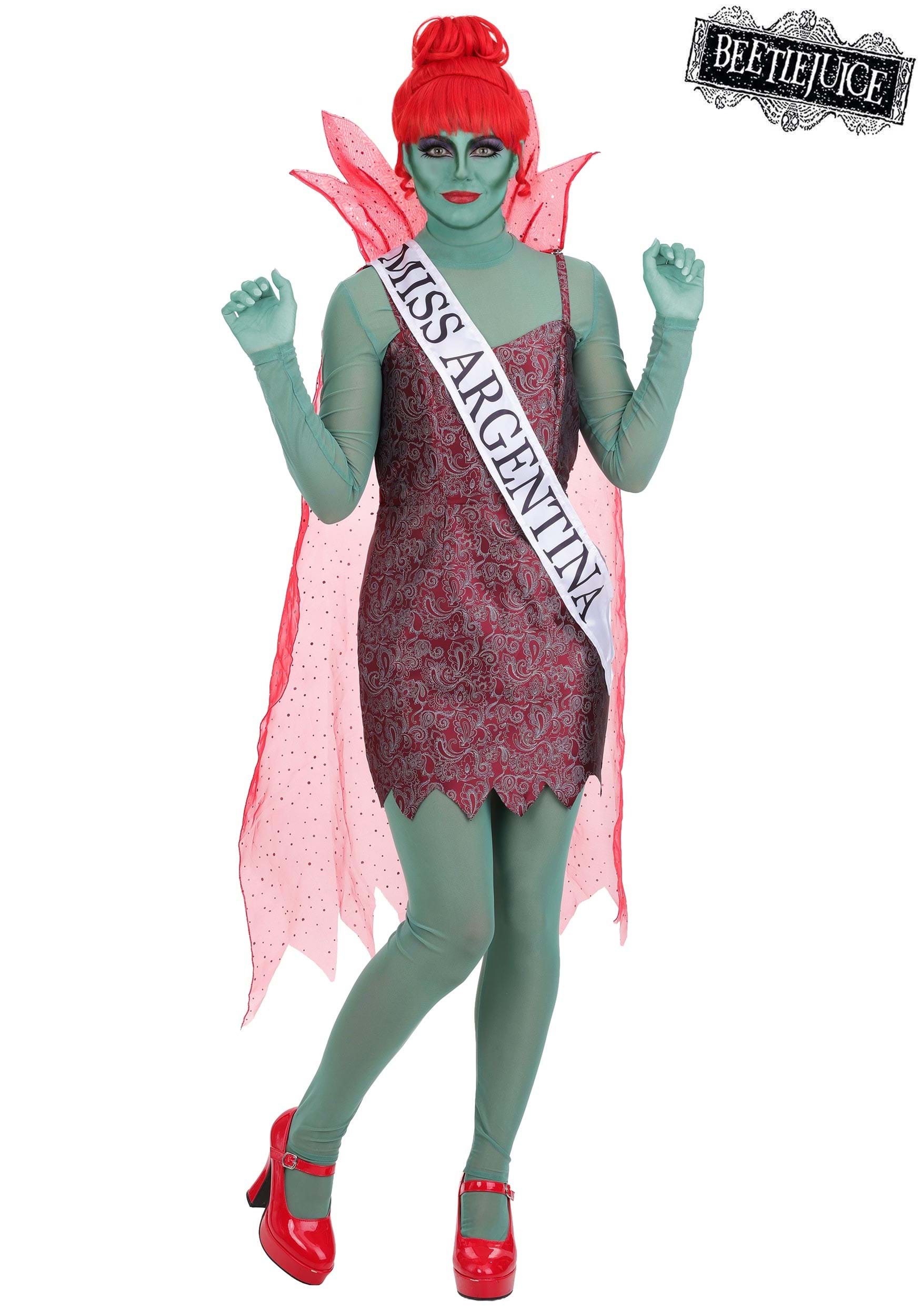 This is an exclusive Women's Beetlejuice Receptionist Miss Argentina Costume.