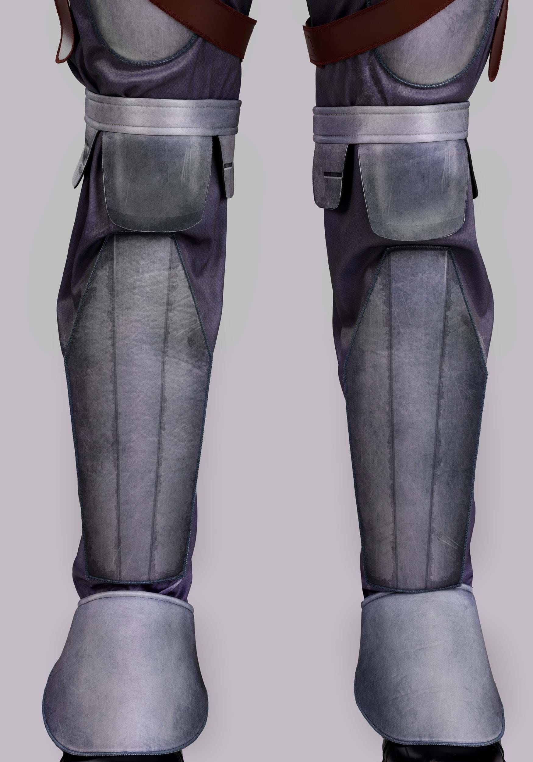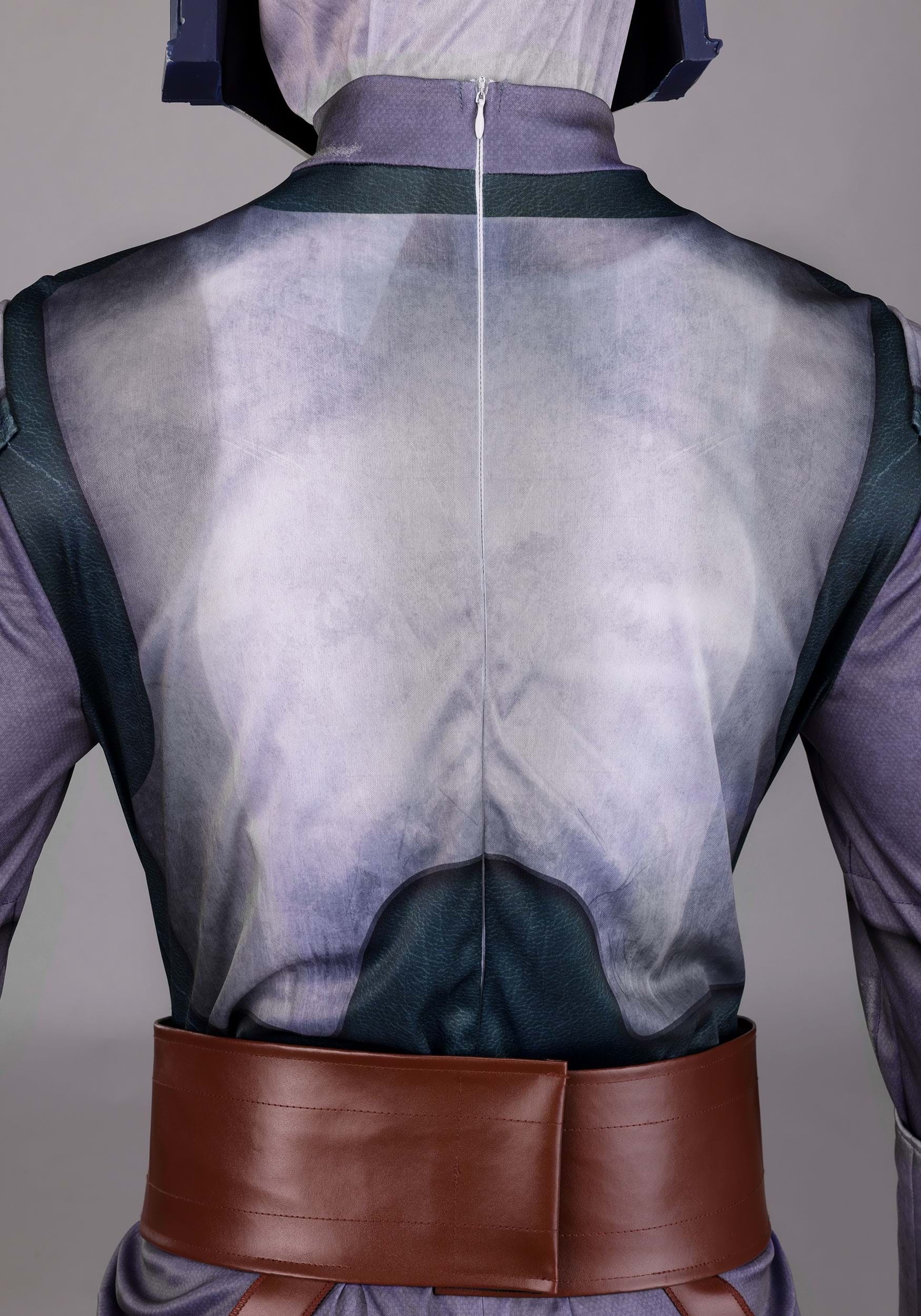The outfit is completed with a half-face mask and hood combo that mimics Jango's silver-and-blue helmet, complete with a see-through visor so you can actually spot your targets or fellow Mandalorian warriors. Matching gloves keep your bounty-hunting hands on theme and the spats pull the whole outfit together like a thermal detonator cherry on top.