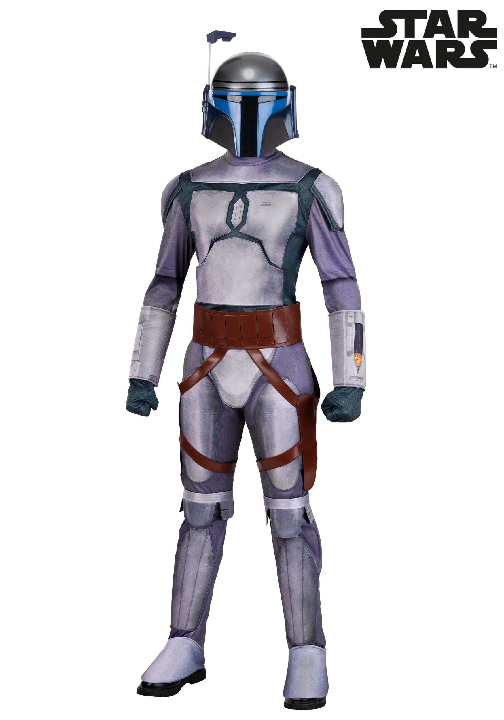 The jumpsuit is crafted from soft jersey material, so it's flexible enough to move through crowds, duck under blaster fire, or just casually impress Star Wars™ fans at your next costume party. Printed armor detailing gives it that signature Jango look, while foam backing in the chest, sleeves, and legs adds depth, dimension, and just enough intimidation to make a Jedi think twice before crossing your path.