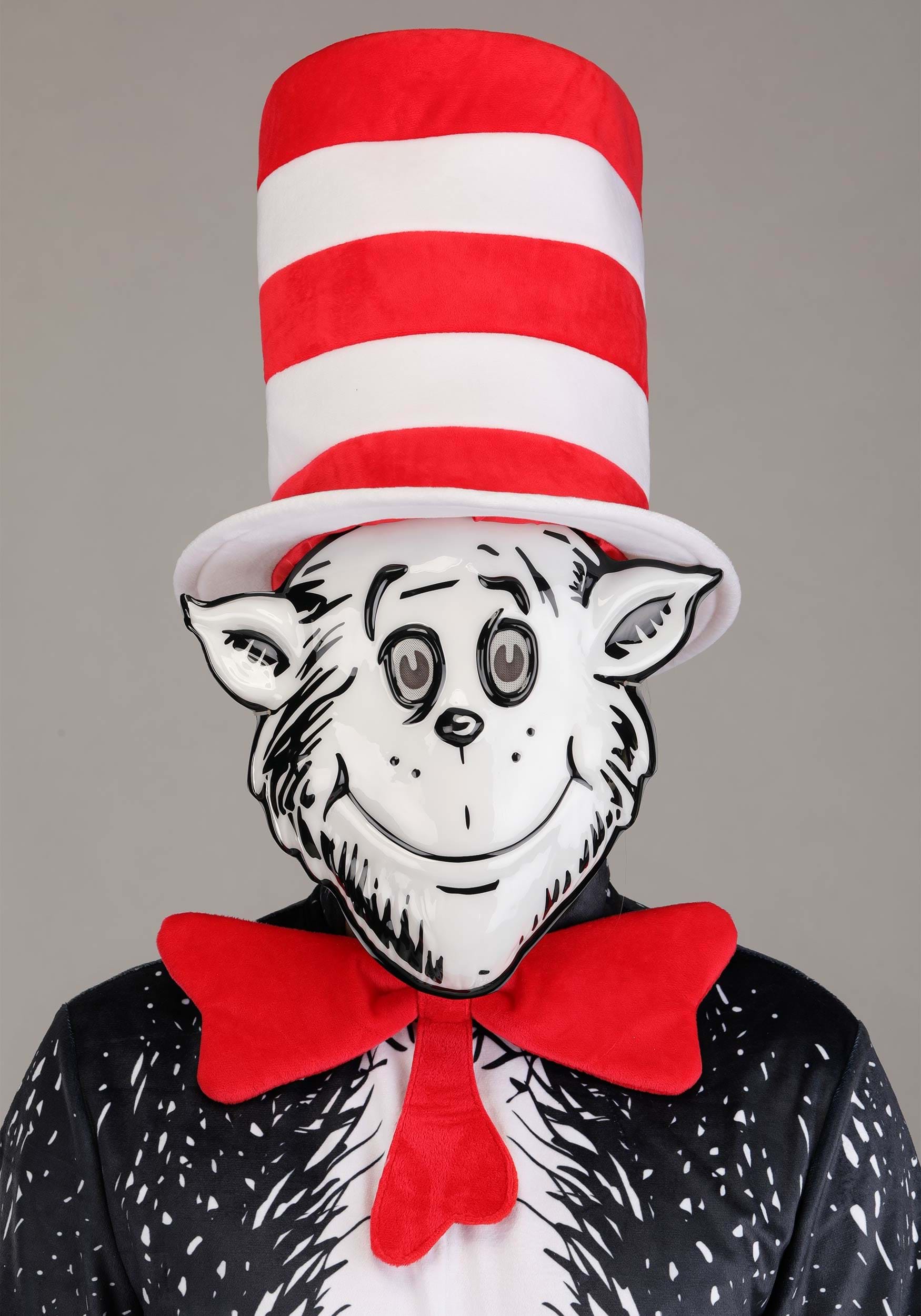 You’ll also get white tie-style gloves that are ideal for wild gesturing and pantomimed rule-breaking, plus the iconic oversized top hat with bold red and white stripes. And then there’s the molded mask—shaped and printed to look exactly like the Cat’s drawn-on smirk, complete with that “I definitely should not be unsupervised” energy.