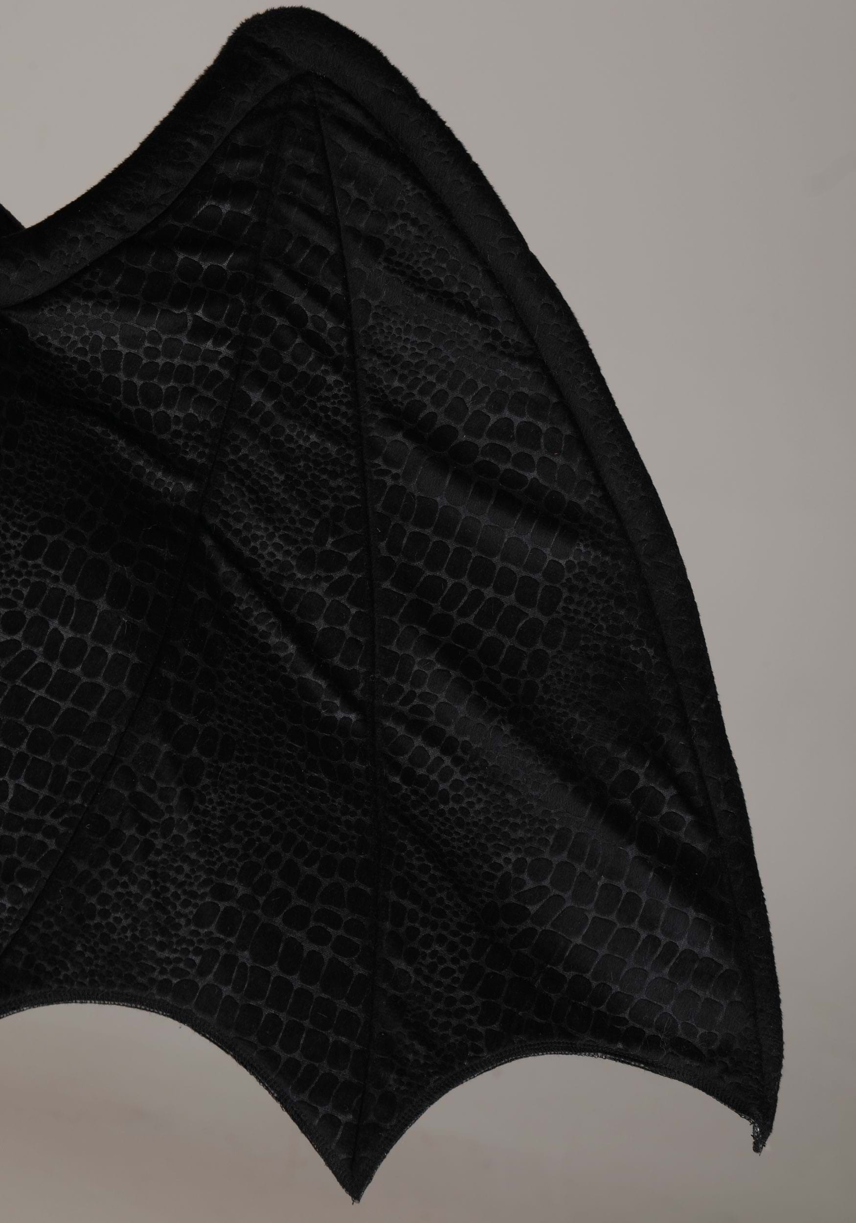 - Wings secure to the back of the jumpsuit with metal snaps and hook and loop closures