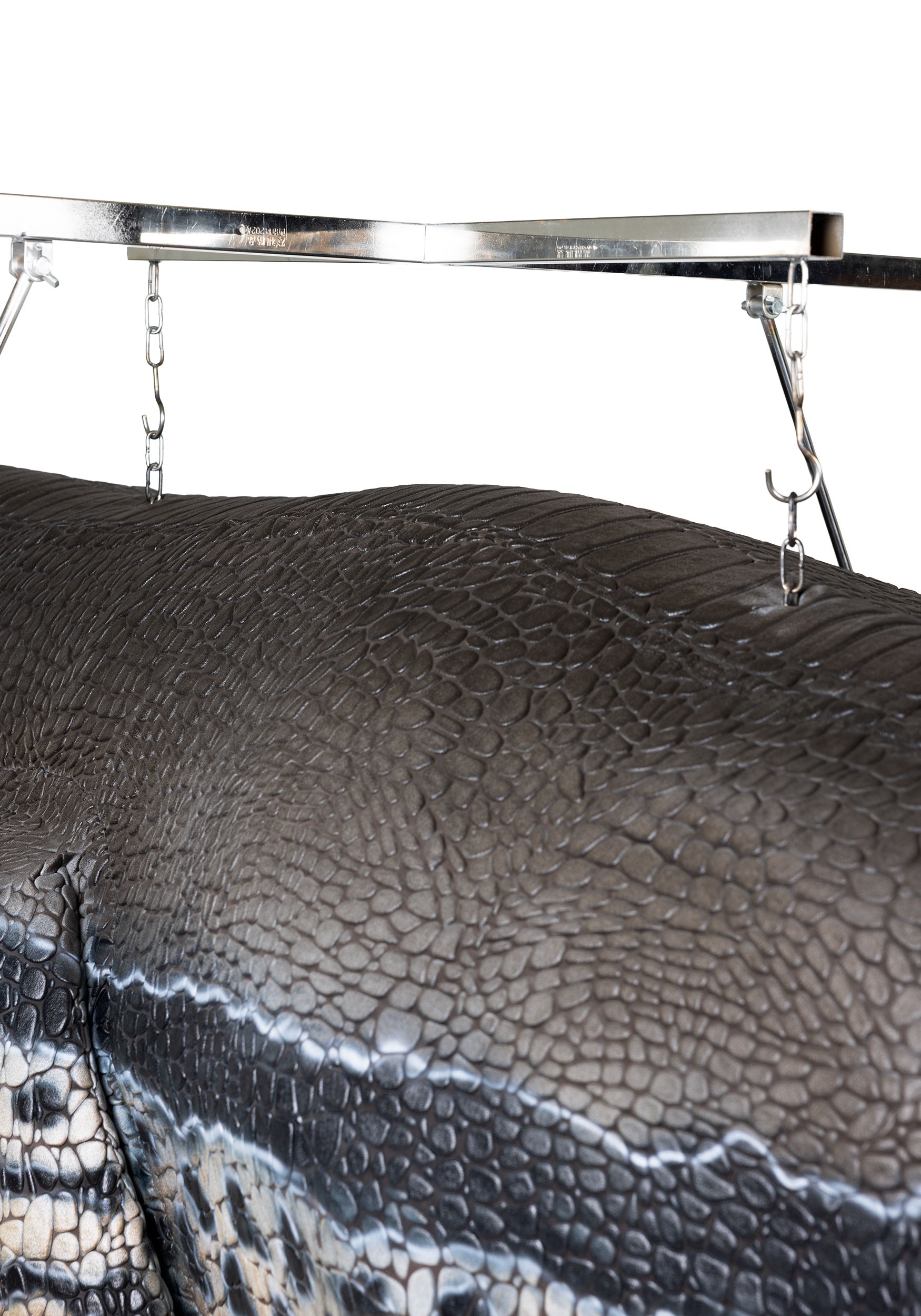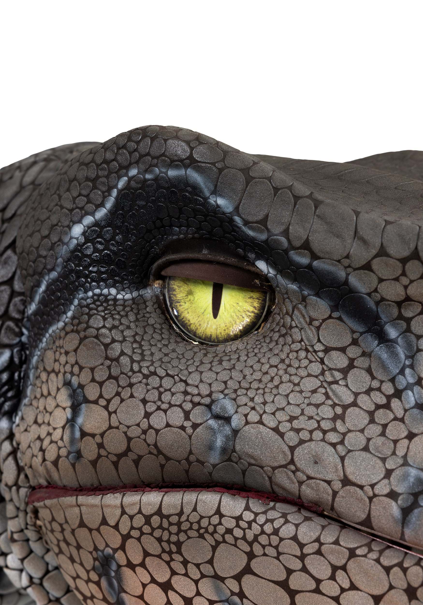 Every angle sells the illusion. The textured exterior mimics reptilian skin, the eyes track with eerie intent, and the body language feels alert and predatory. It's the kind of costume that turns a haunted attraction, event, or display into a full-blown spectacle, complete with movement, sound, and reactions you can hear from across the room.