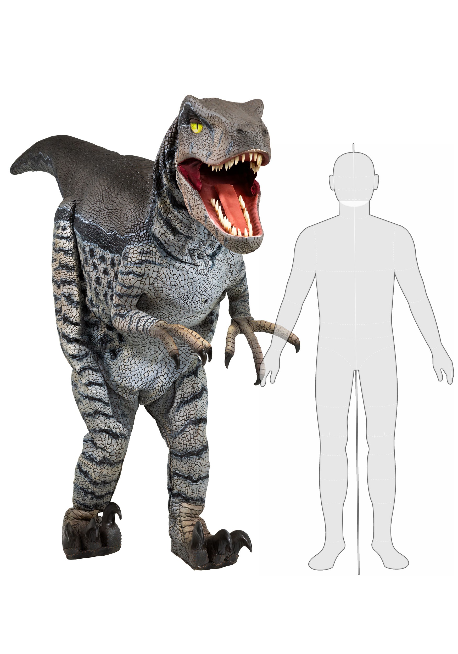 This is the kind of costume that doesn't enter a room so much as claim territory. The Realistic Raptor Costume towers at a jaw-dropping height and looks alive in a way that makes people instinctively take a step back. From the muscular stance to the alert posture, it carries the presence of a creature that knows it's at the top of the food chain and expects everyone else to know it, too.