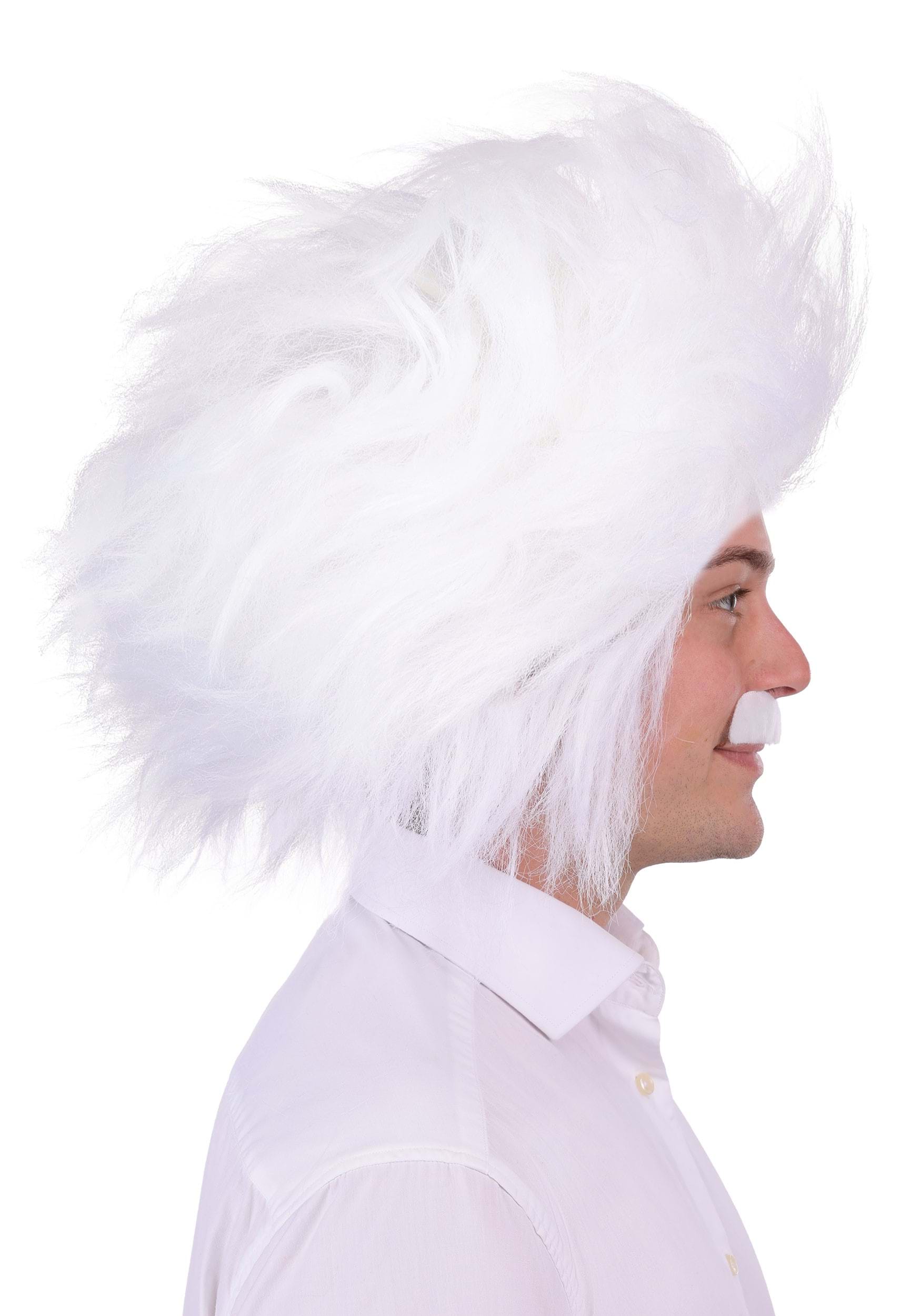 This is an exclusive Adult Mad Scientist Costume Wig and Mustache Kit.