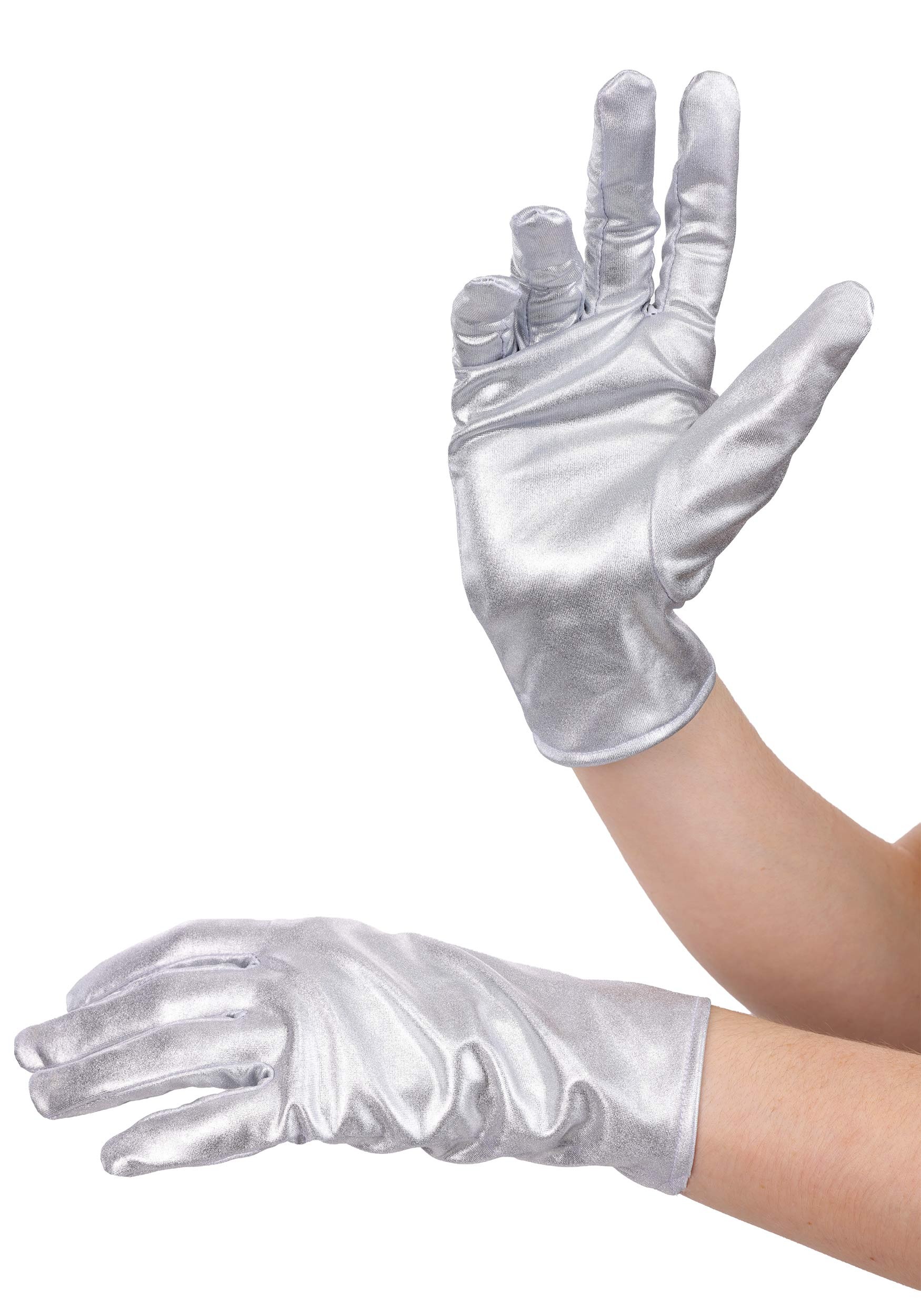 This is a pair of exclusive Women's Metallic Silver Costume Gloves.