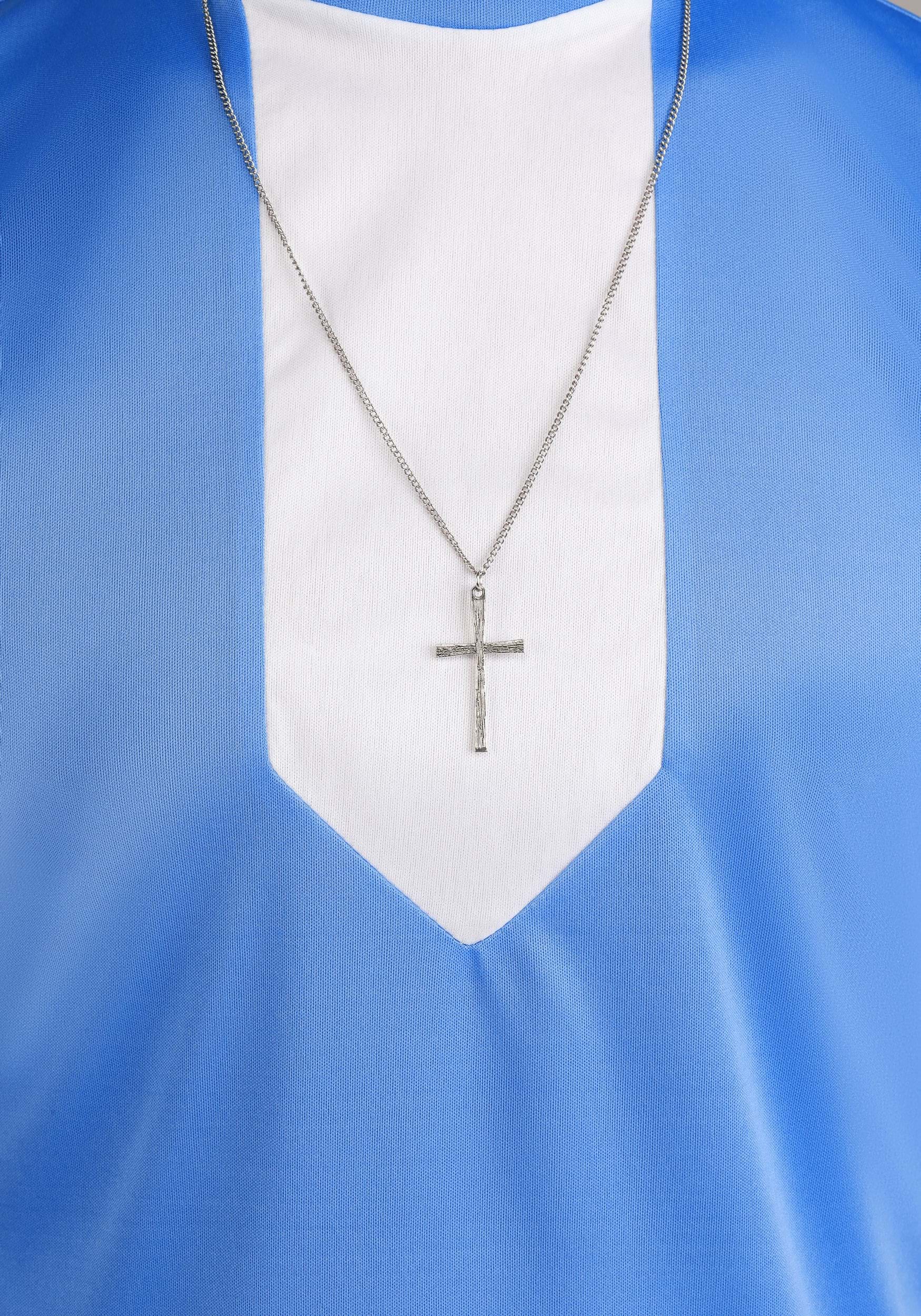 Accessories? Of course. The metallic silver necklace delivers peak Rico confidence. And the hair—oh, the hair. The synthetic styled wig has a built-in elastic cap for a secure fit, and the self-adhesive mustache will have people questioning if you actually live in a van or just spend weekends throwing footballs at camera tripods.