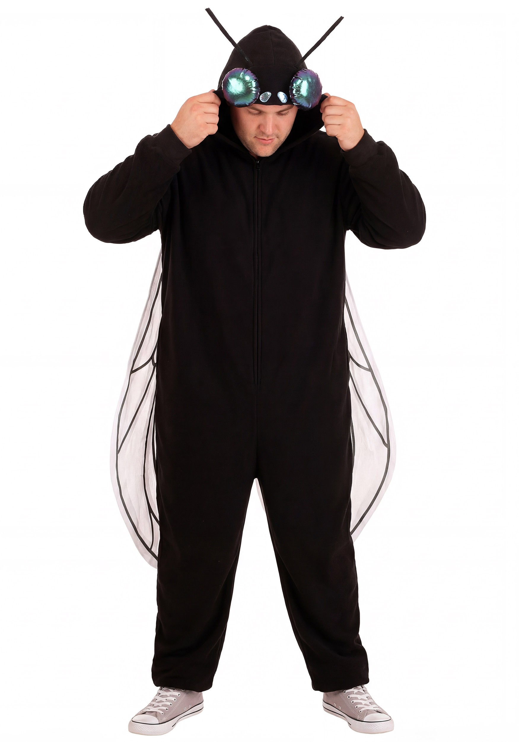 This is an exclusive Plus Size Fleece Fly Costume Onesie for Adults.