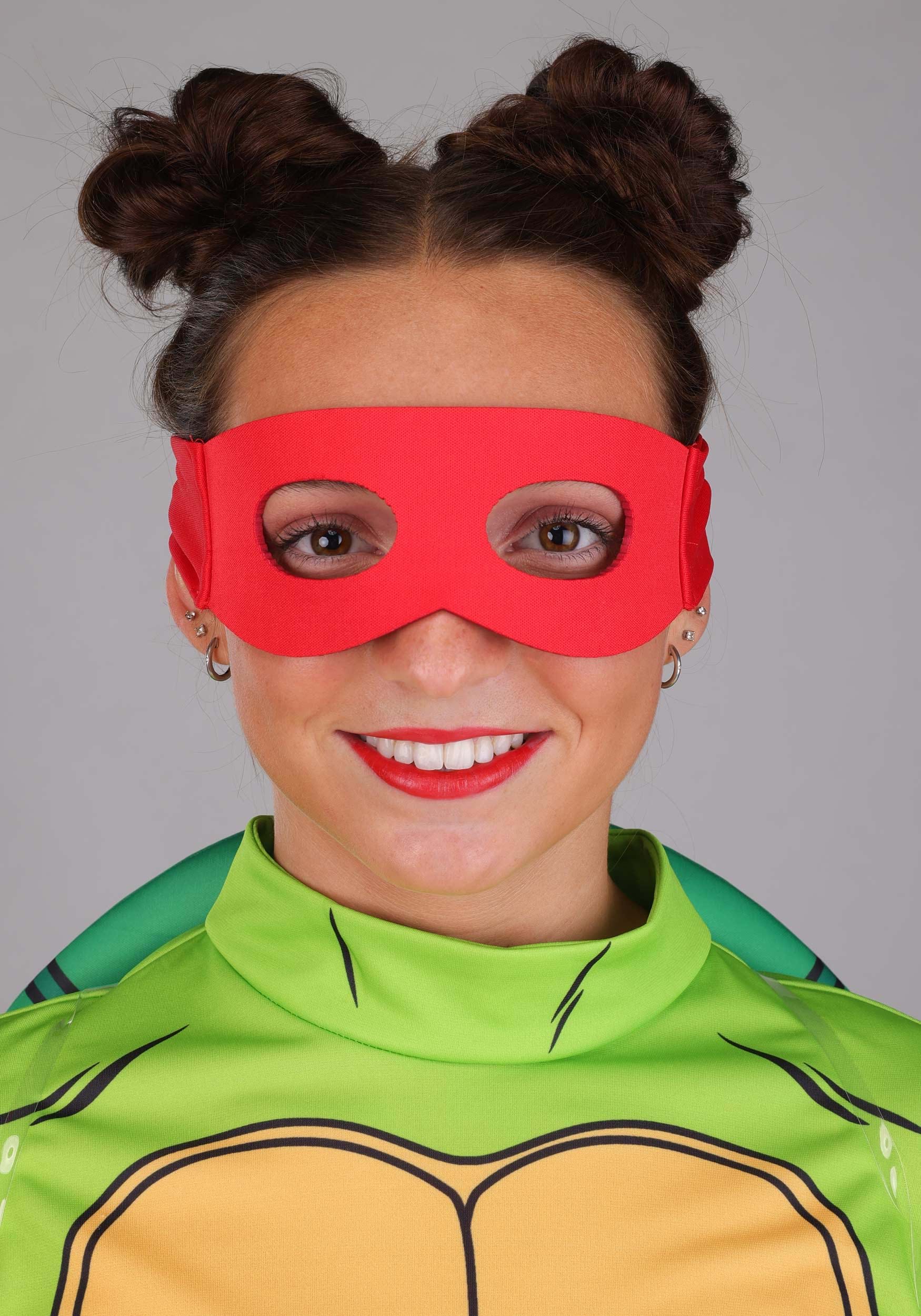 To complete the transformation, the costume includes a dark green turtle shell that slips over your shoulders with a translucent strap, staying secure no matter how intense your ninja moves get. The tie-on red eye mask features printed eye holes and fits comfortably across your face for that unmistakable Raphael glare.