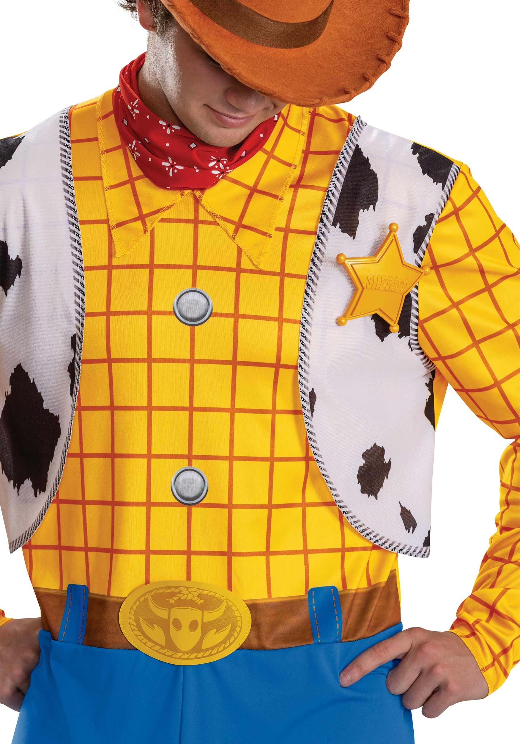 You have been to too many costume parties where you showed up as "a person in regular clothes who said they were a ghost." That era is over. This officially licensed Toy Story Woody costume gives you a fully committed cowboy look, complete with hat, bandana, and enough yellow plaid to settle any debate about what you came as.