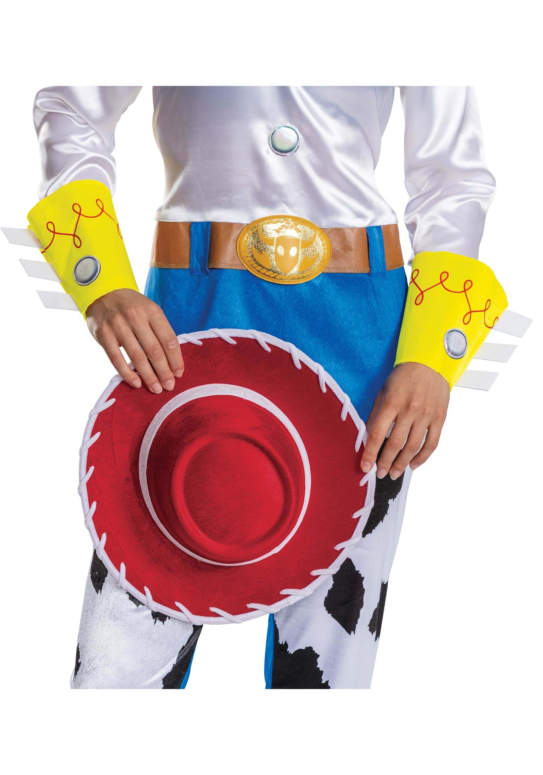 Jessie is the most enthusiastic person in any room, animated or otherwise, and this costume earns that energy. The satin-like top, the yellow felt cuffs, the decorative buttons — it's a full commitment to the yee and, more importantly, the haw.
