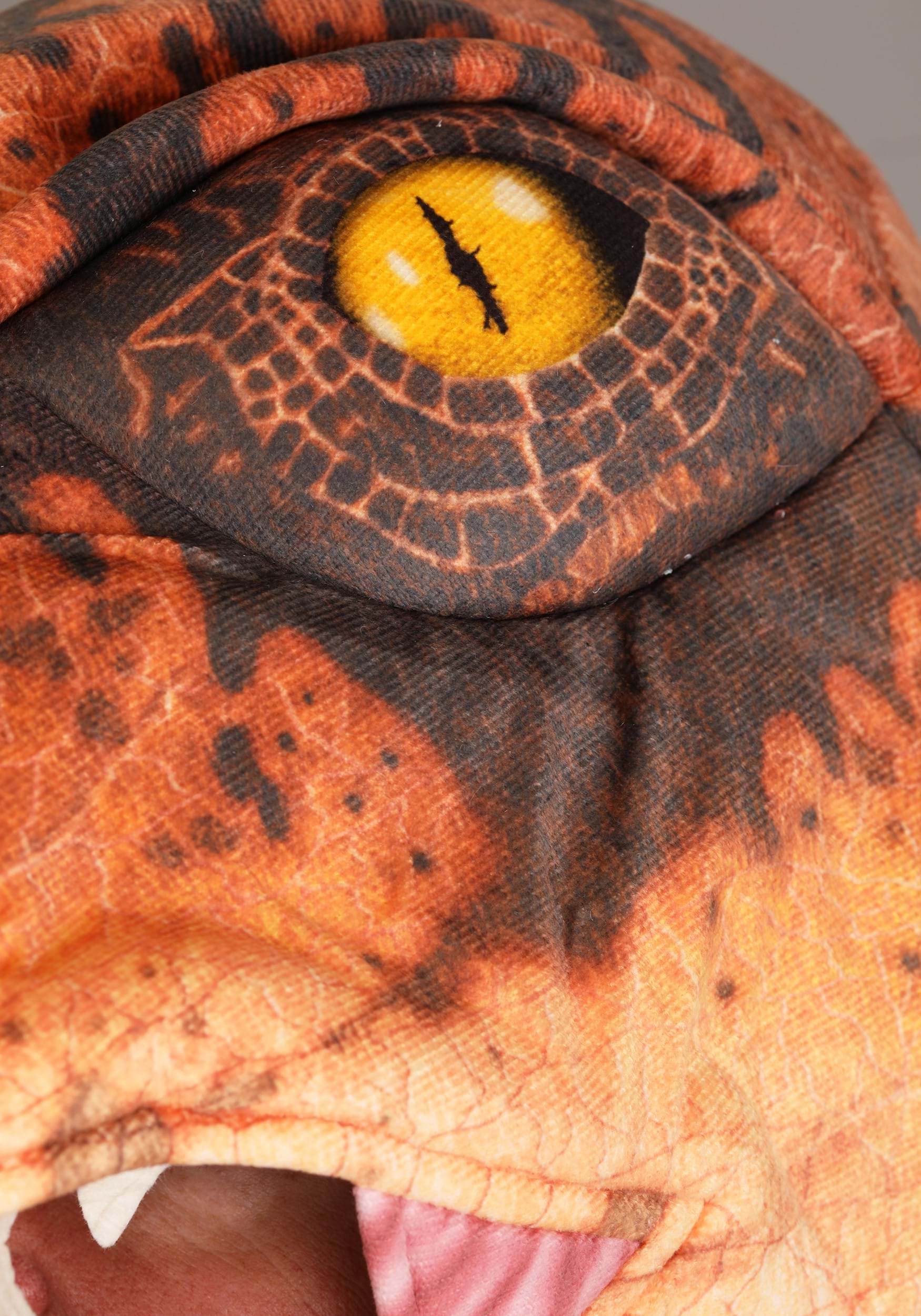 - Top of headpiece has printed & soft-sculpted velociraptor face