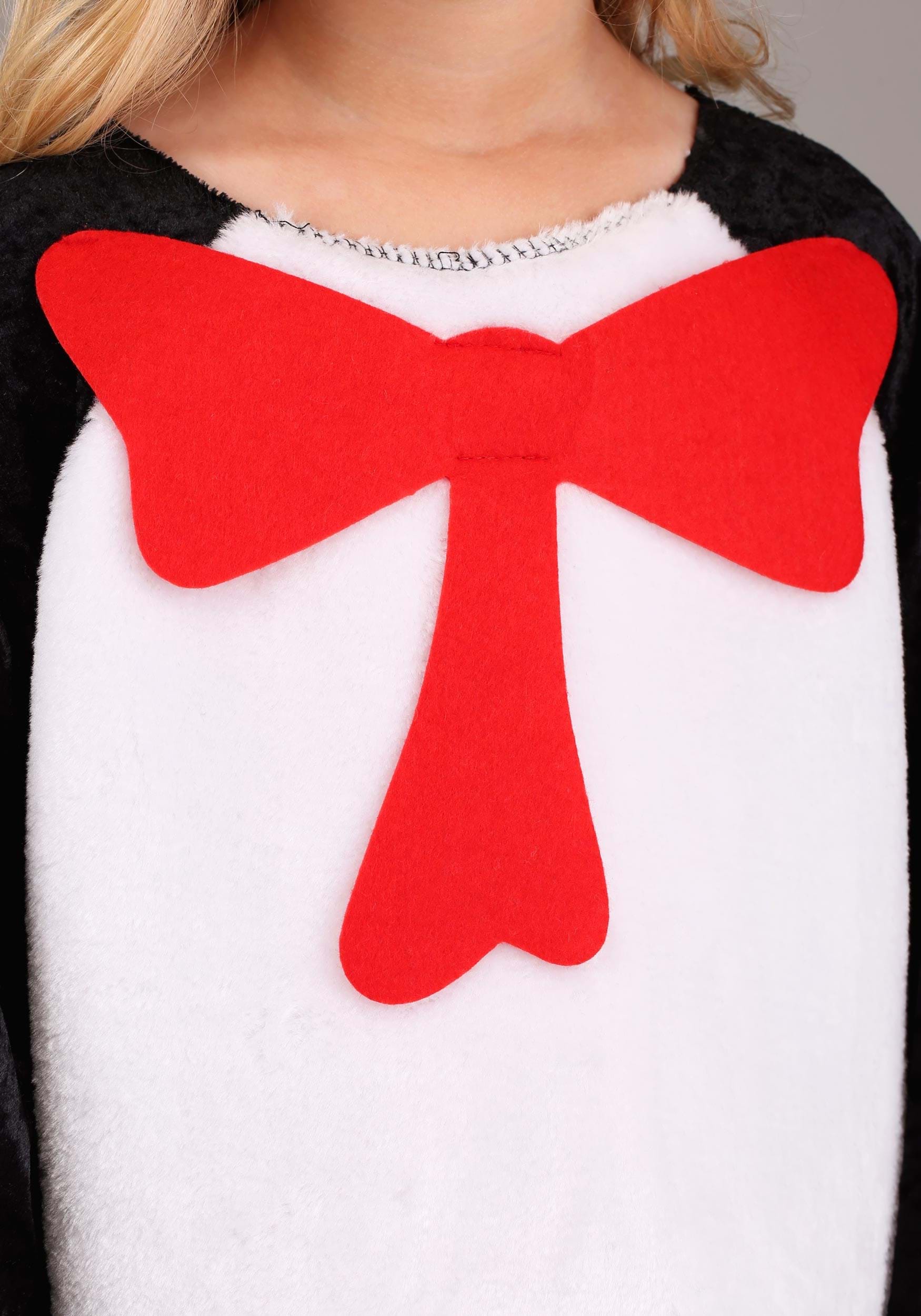 Inspired by your favorite character from the books, this Cat in the Hat costume comes with a crushed velvet jumpsuit that fits with a fastener in the back. The suit has a white tummy and an attached red bowtie at the neck. The tail attaches to the back of the suit with a hook and loop fastener, and the tall top hat puts the finishing touch on the whole look. It's an easy way for your little one to cosplay as The Cat!