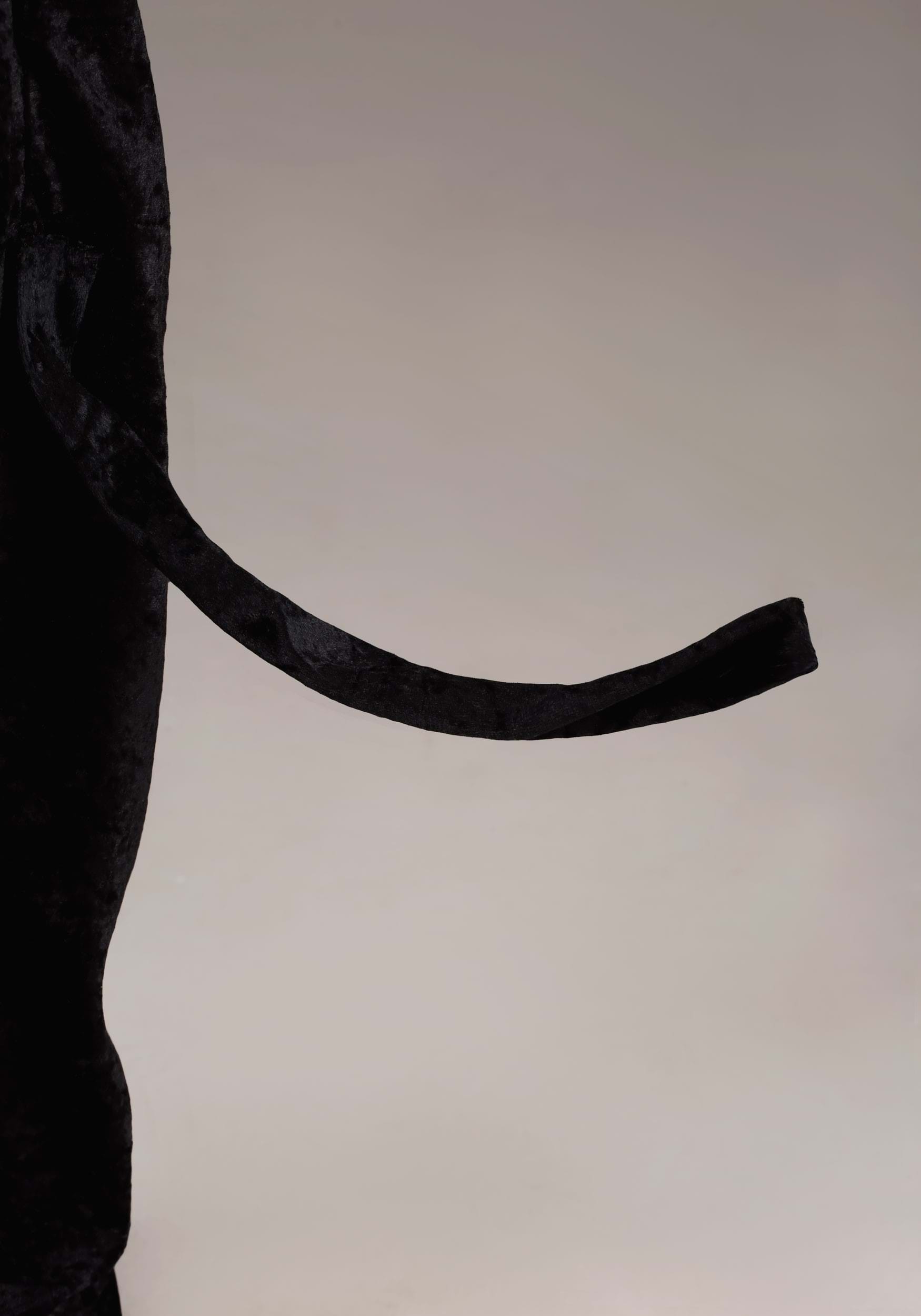 - Crushed velvet jumpsuit has hook and loop fastener at center back