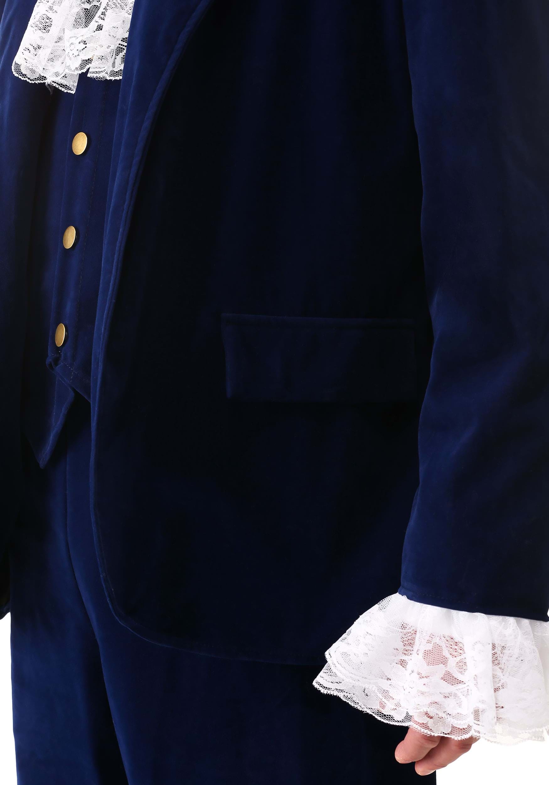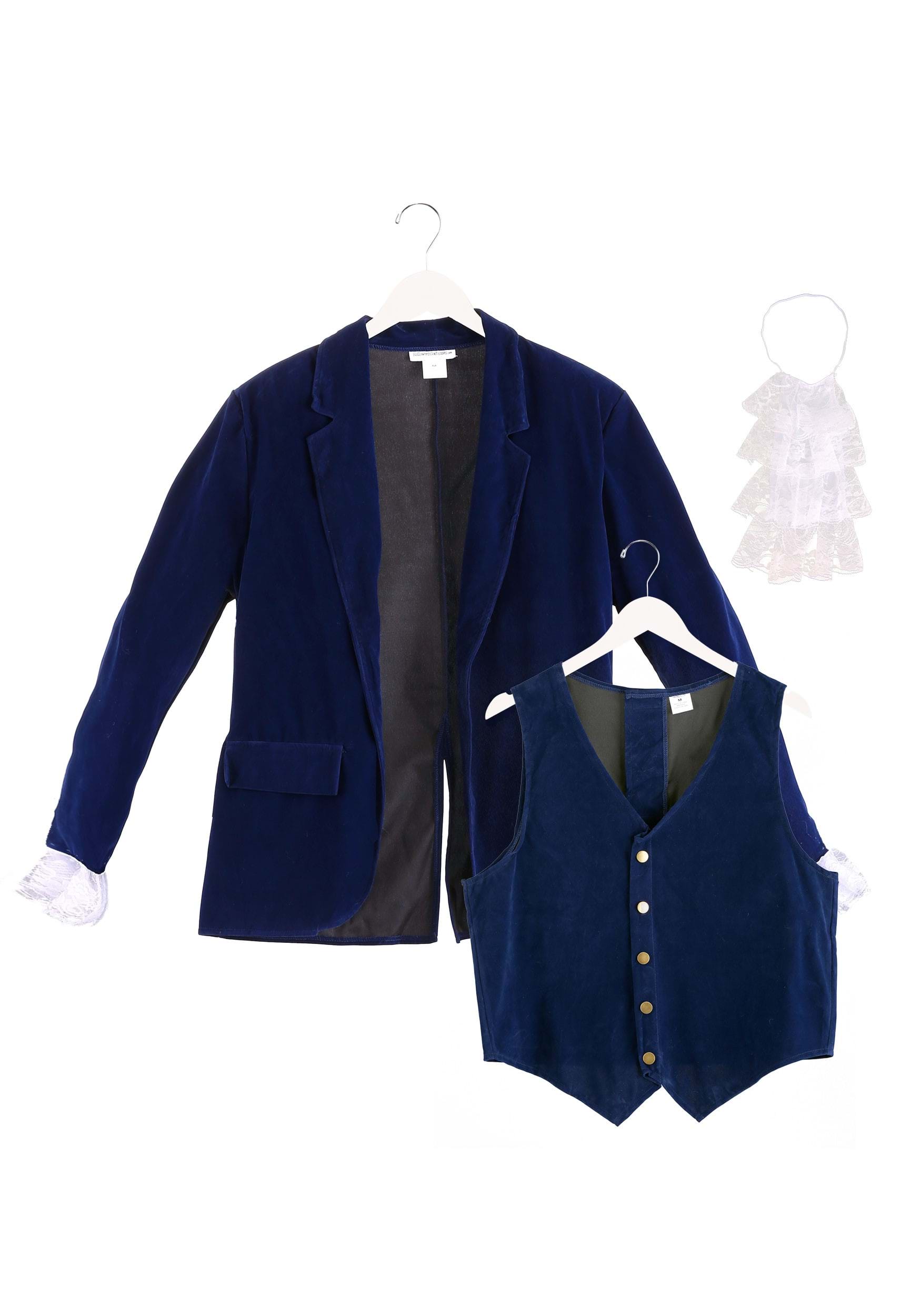 Now, you can be a swinging '60s spy. Just put on this Deluxe Blue '60s Swinger Costume. You'll be dancing to Jumpin' Jack Flash by the Rolling Stones as you put on this velvet jacket, velvet pants, and velvet vest. The long-sleeved jacket has a velvety look thanks to flocking, all with a rayon base for extra comfort. Lace cuffs give you the perfect '60s twist while elastic in the trousers make for a modern fit. The vest fastens with hook and loop tape and the cravat brings the ensemble together!