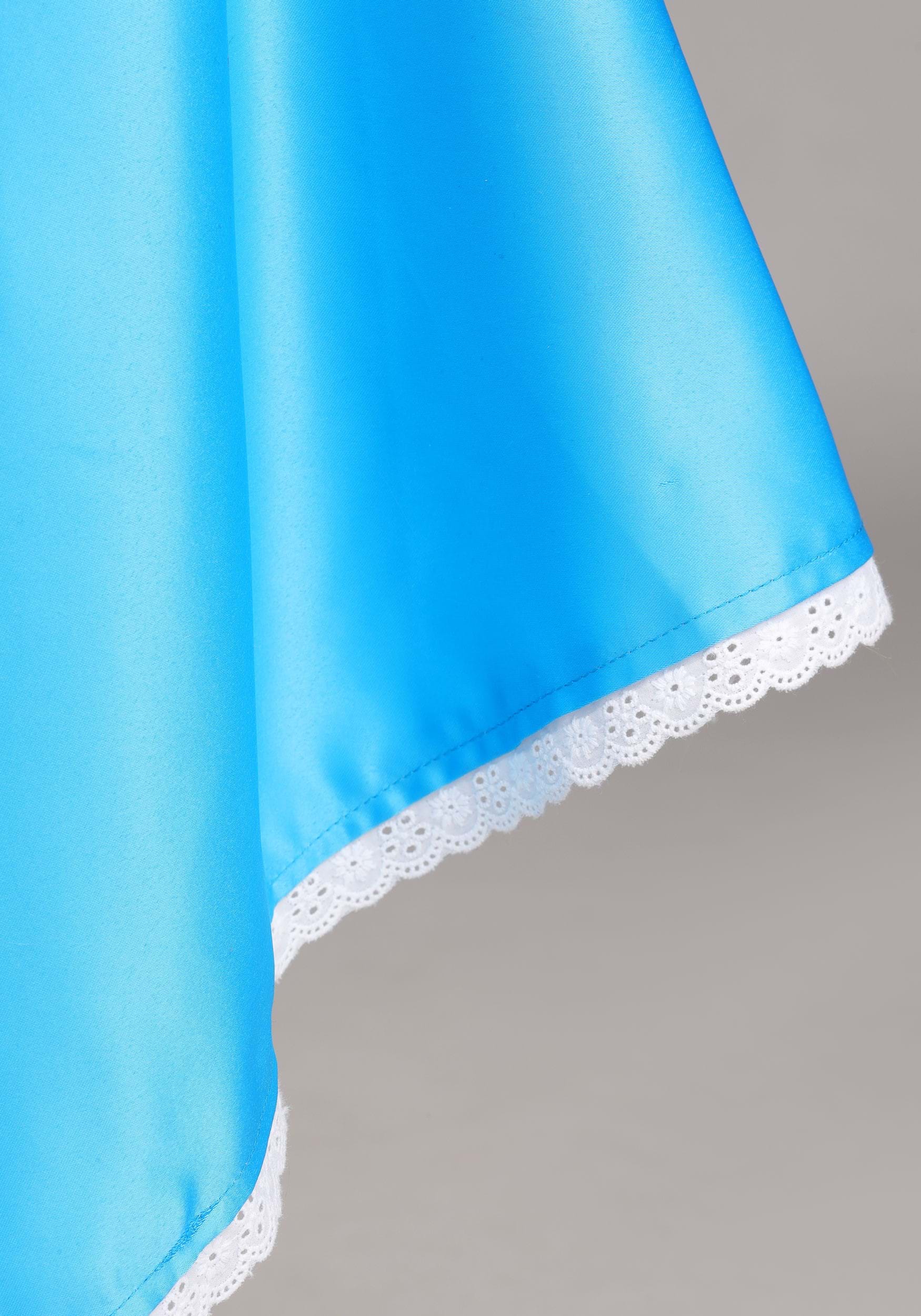 Designed with layered detail, this Ariel costume features a soft knit top, a shimmering bridal satin corset bodice, and a flowing satin skirt finished with dainty eyelet lace trim. A convenient back zipper makes dressing a breeze, while the matching satin bow secures easily in the hair with an elastic loop. Every stitch feels like a splash of seaside wonder in a world just waiting to be discovered.