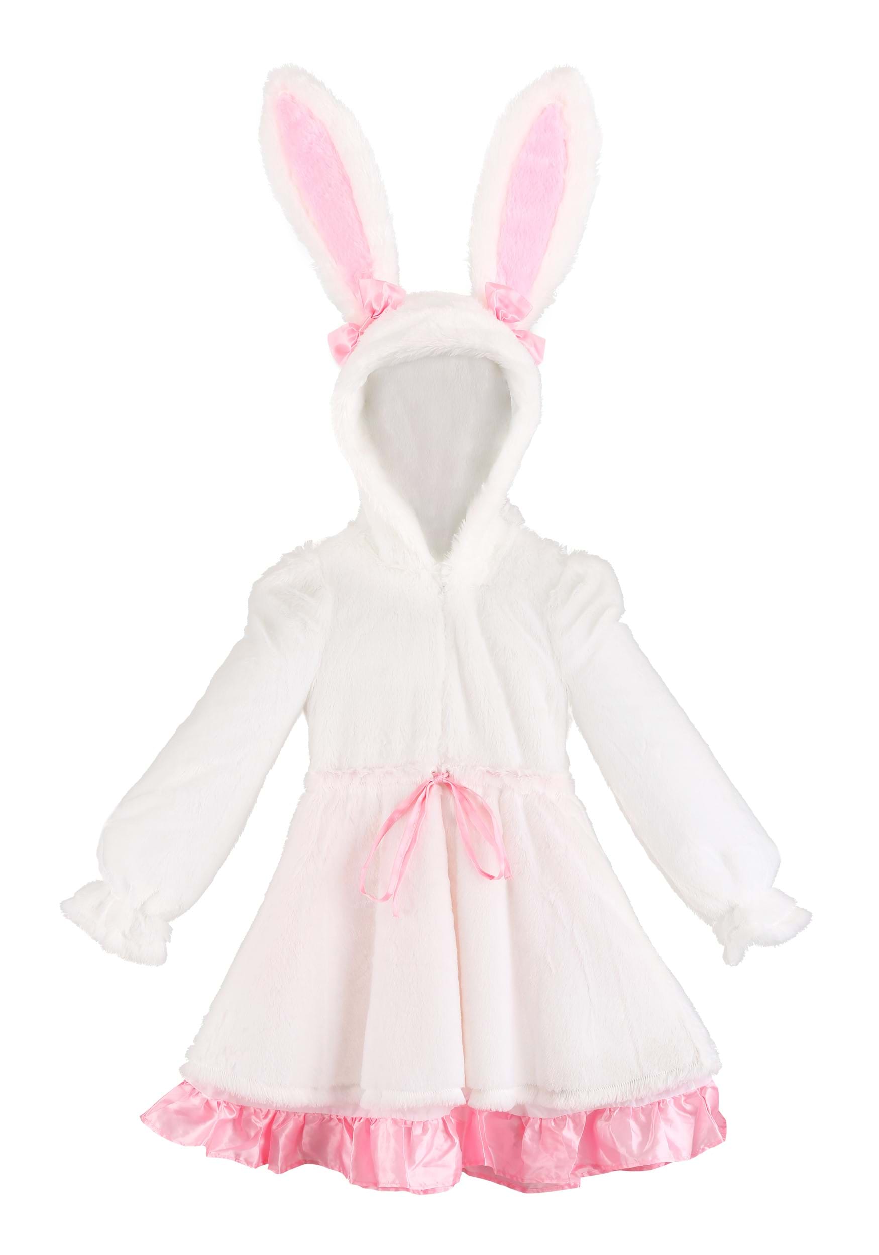 This Fuzzy White Rabbit Costume for girls is a Made by Us exclusive. And we designed it in a fun style that's sure to be a blast. Styled as an extra furry dress, it's got all the rabbit details she'll need! The hood has attached ears that stand up straight. The dress zips up the front and has a satin ribbon that ties at the waist to adjust fit. We have it pictured with makeup and accessories, and you can shop here to complete the style or use her own everyday clothes to assemble the perfect costume look!