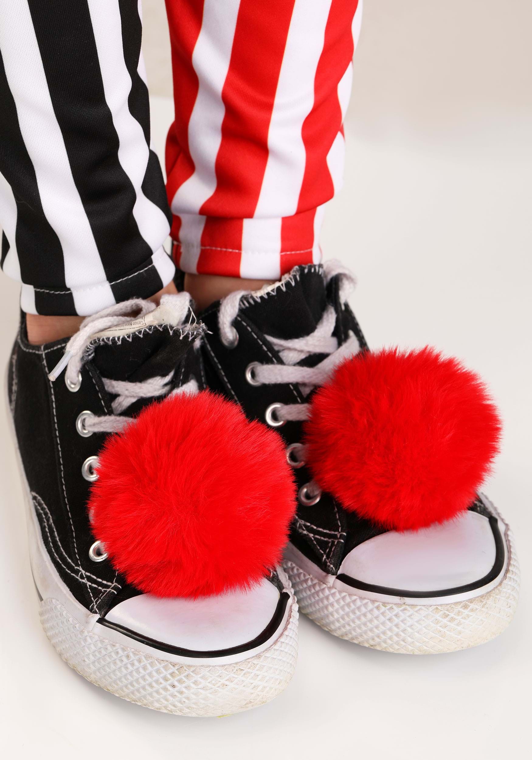 - 2 red shoe poms have elastic bands to thread shoe laces through to secure to your shoes