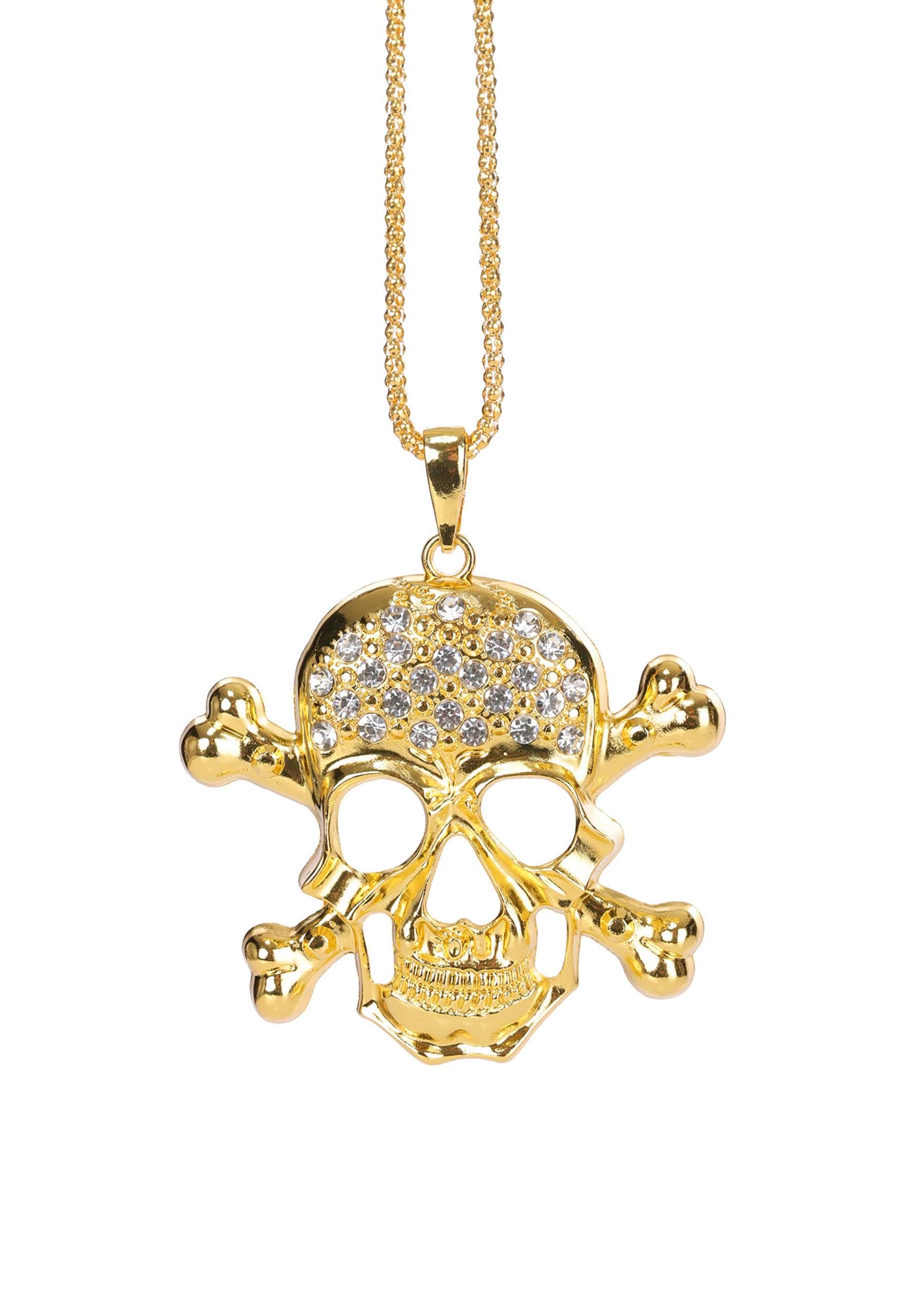 This is an exclusive Gold Skull and Crossbones Pirate Costume Necklace.