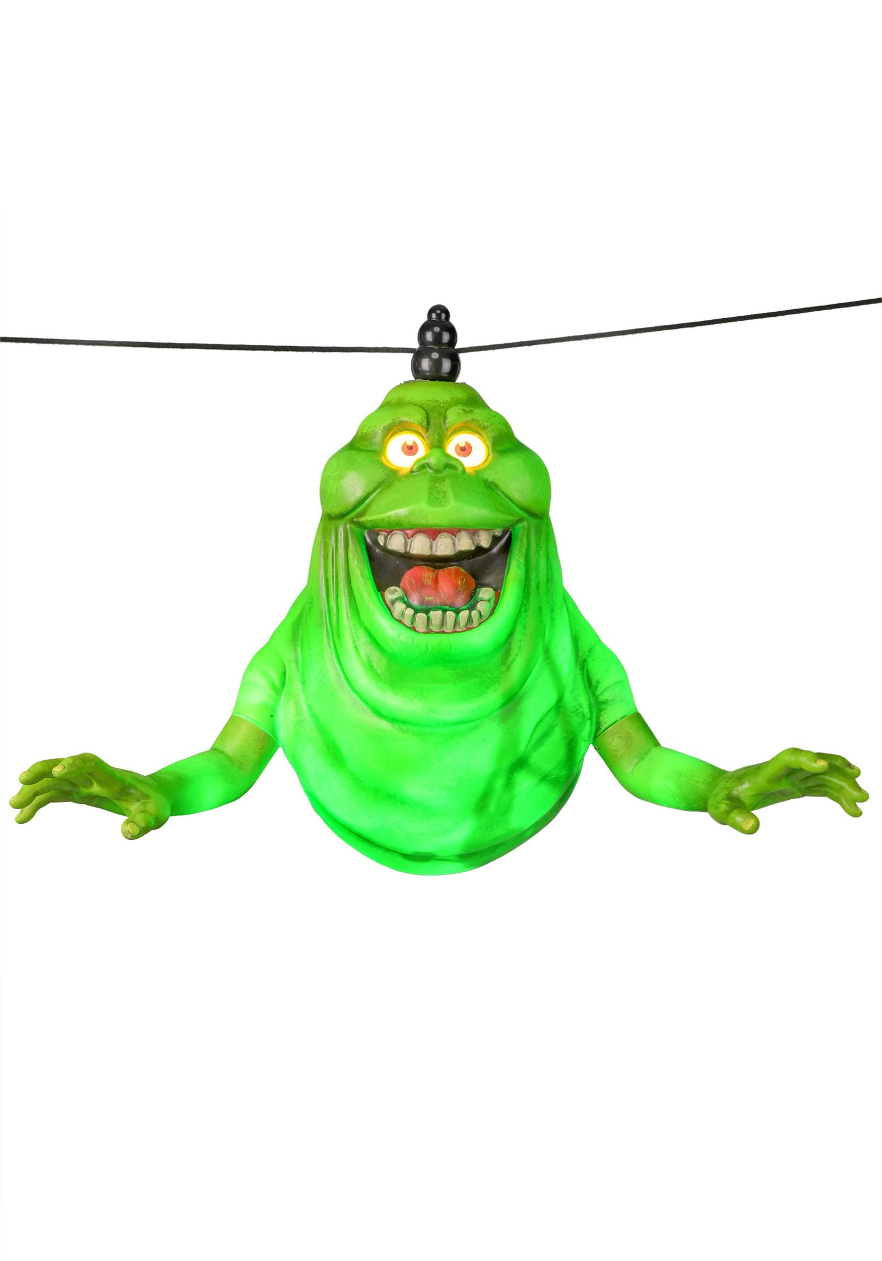 Here comes trouble. And it’s bright green, sticky, and making ghostly noises like it just got kicked out of an all-you-can-eat buffet. This Hanging Swinging Slimer Prop doesn’t just loiter in a corner—he zips through the air with the energy of a haunted rollercoaster and the charm of a poltergeist on his third espresso. If your yard didn’t have green ghost energy before, it’s about to. Make sure you have the Ghostbusters on speed dial.