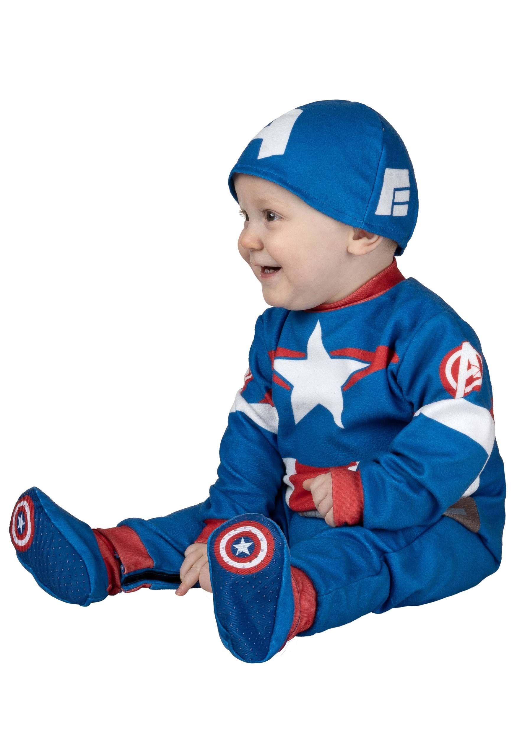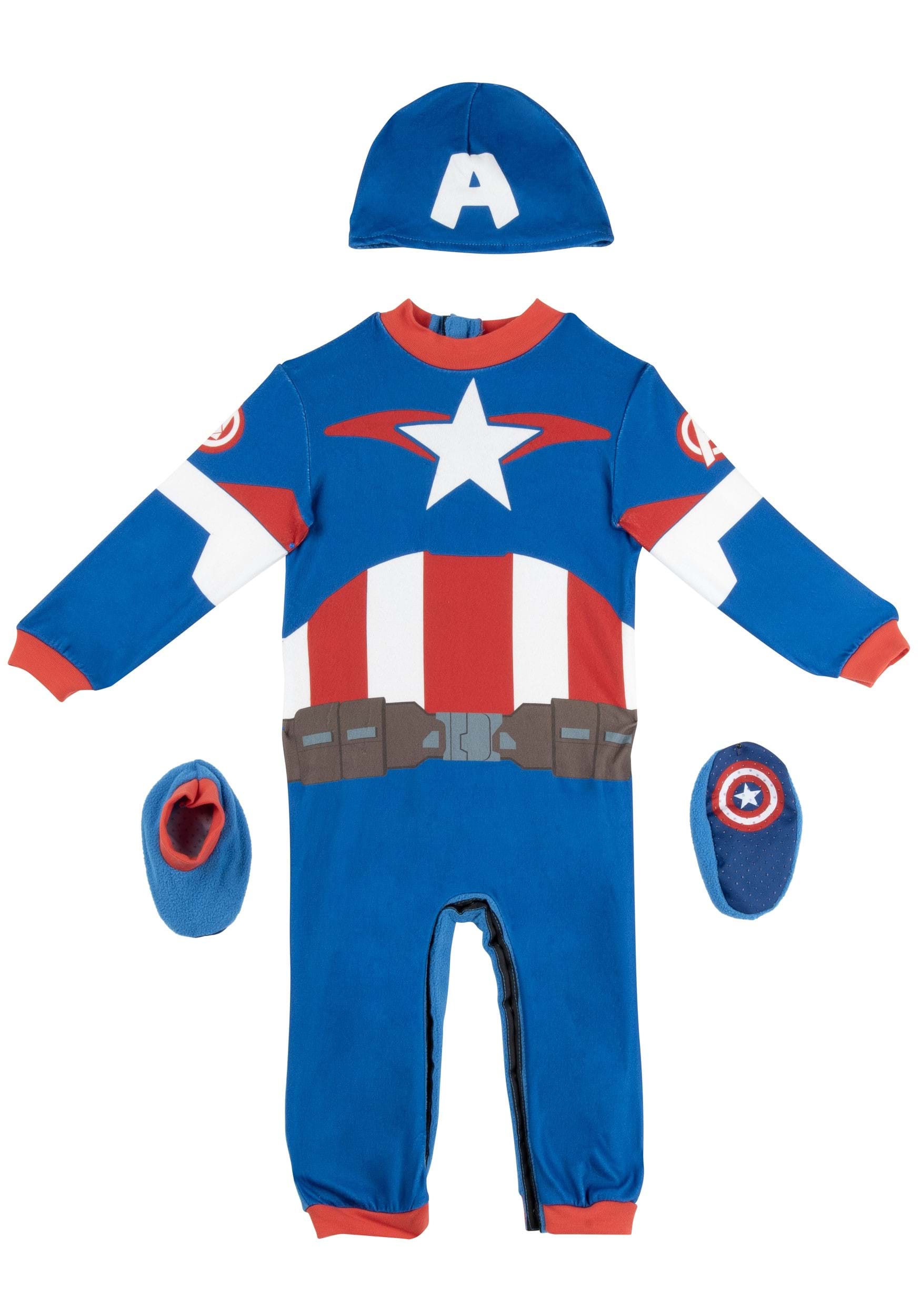- Fleece booties have rib knit cuffs; outer soles have anti-skid material & printed Captain America shield