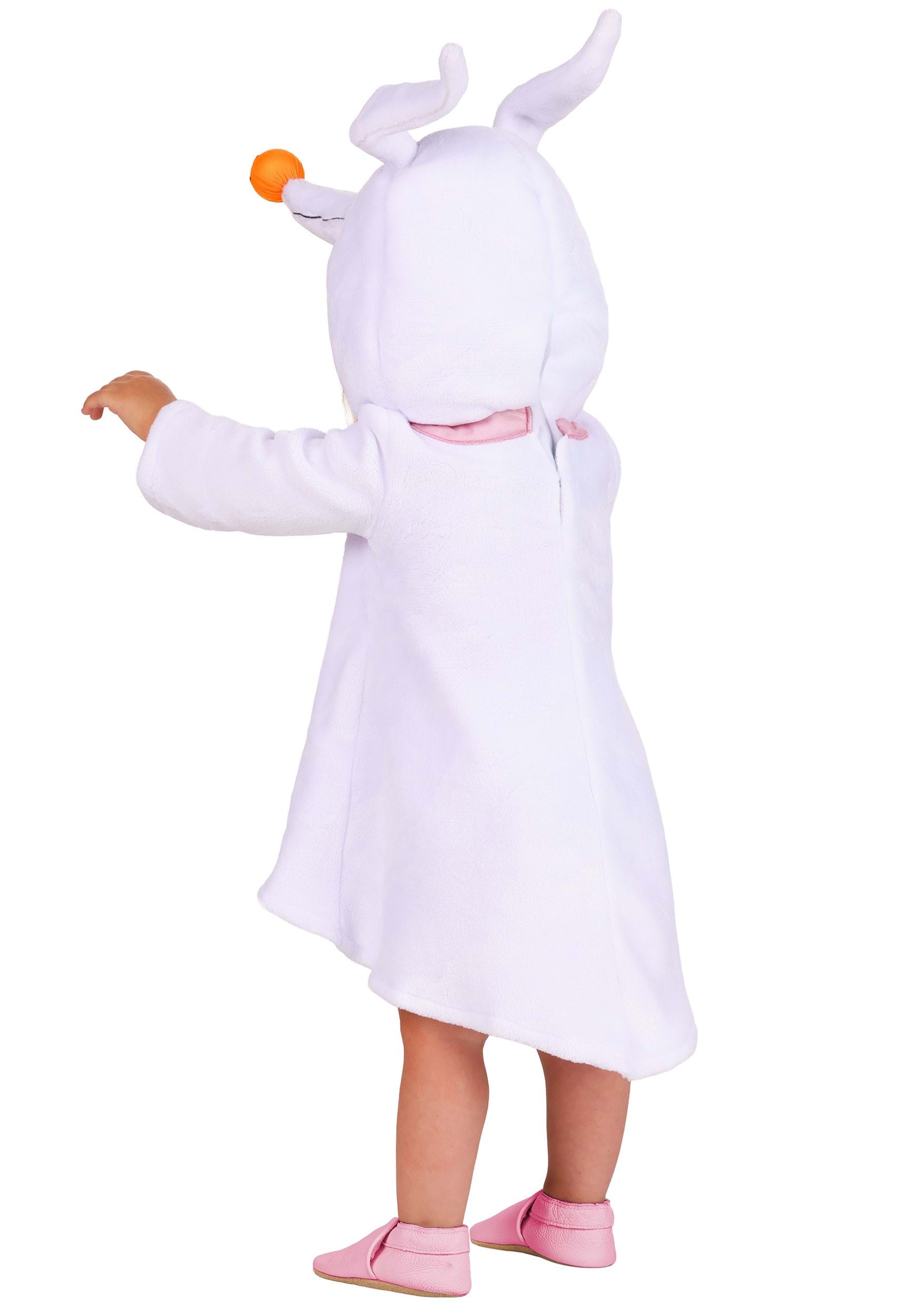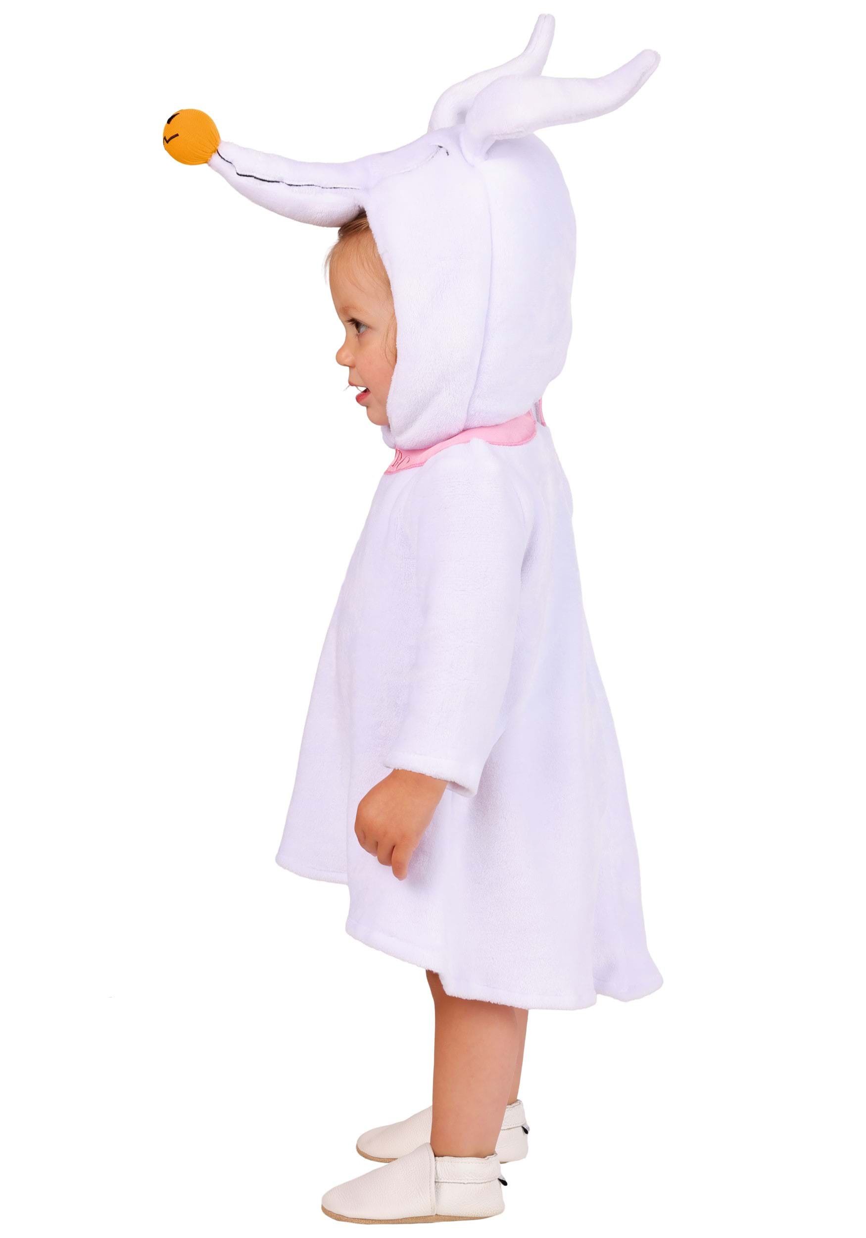 This plush white tunic wraps your little one in cozy comfort, fastening easily with a hook-and-loop closure at the back of the neck. The attached hood features Zero's signature smile with carefully embroidered facial details and flexible wireframe ears that stand out with charm. A soft pink collar embroidered with Zero's name adds a delightful finishing touch.
