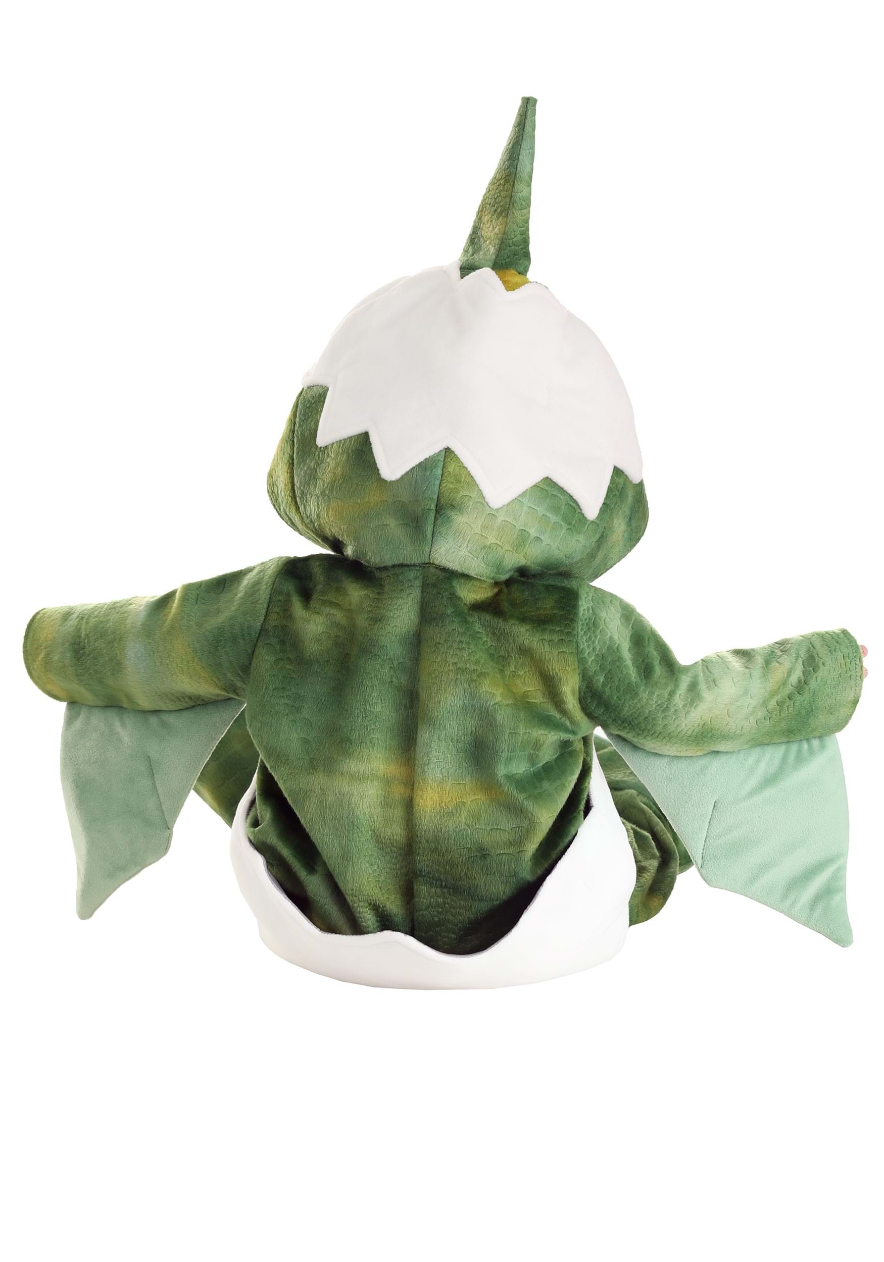 Your little monster will be the cutest critter in the Jurassic Era when you snuggle them into this Hatching Pterodactyl Costume for Infants! The exclusive jumpsuit-style outfit is made of deliciously soft polyester velour in shades of green and cream. It's designed to look like a pterodactyl's body, complete with a light-colored underbelly, arms that feature fabric "wings", and a hood with a soft-sculped beak and crest. Snaps along the crotch and inseams are convenient for when it's time to change baby dino's diaper. A foam-backed body shell fits over the jumpsuit's legs, and a matching foam-backed head shell piece fits over the hood's crest. Your little one will look as though he or she is emerging from a cracking shell.
