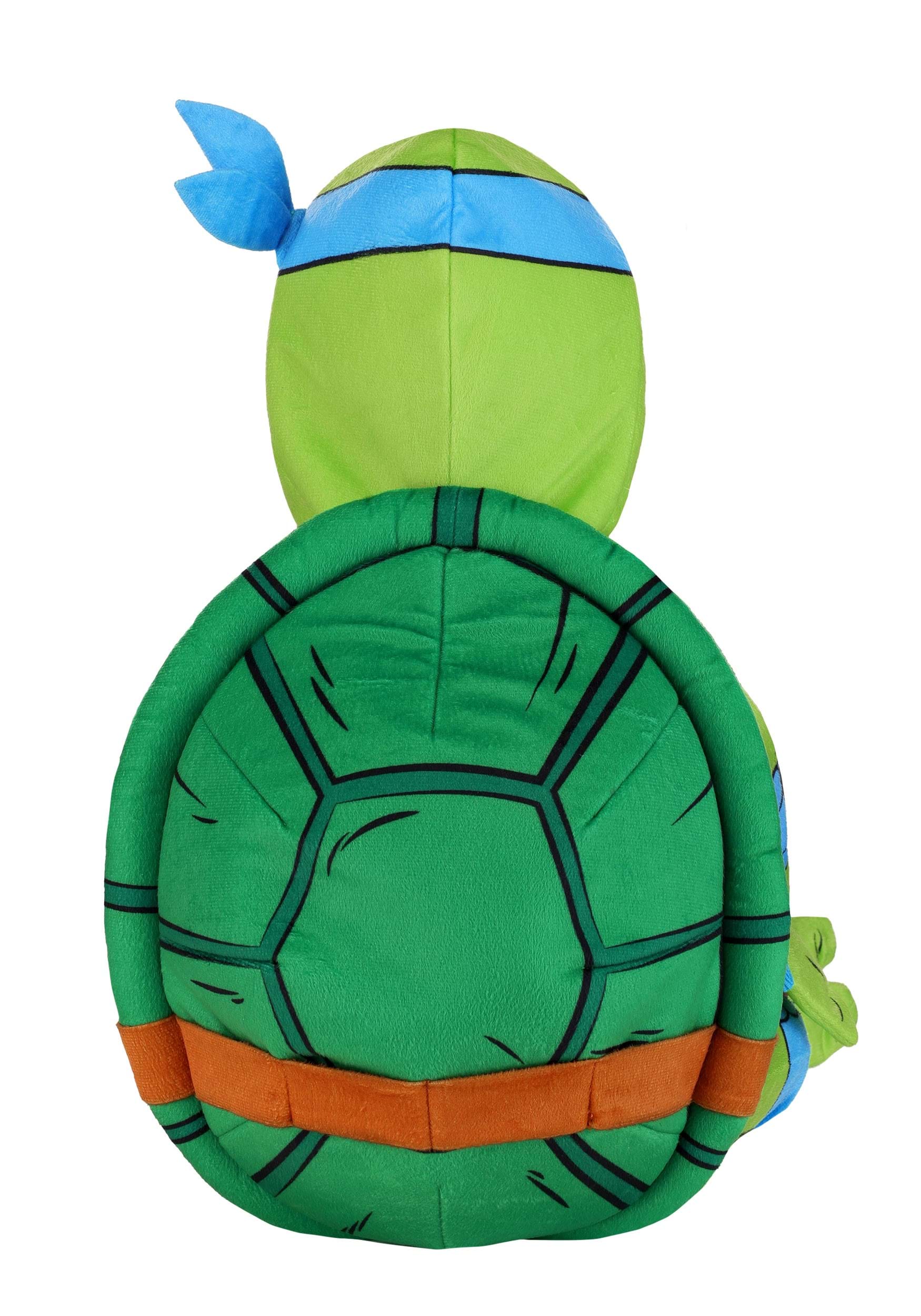 The hood has printed eyes and Leonardo’s classic blue bandana, complete with side ties that say, “I came here to lead and then maybe nap in a pile of blankets.” A soft, dark green shell attaches to the back of the suit with hook-and-loop fasteners and gives full turtle-back coverage without weighing your baby down.