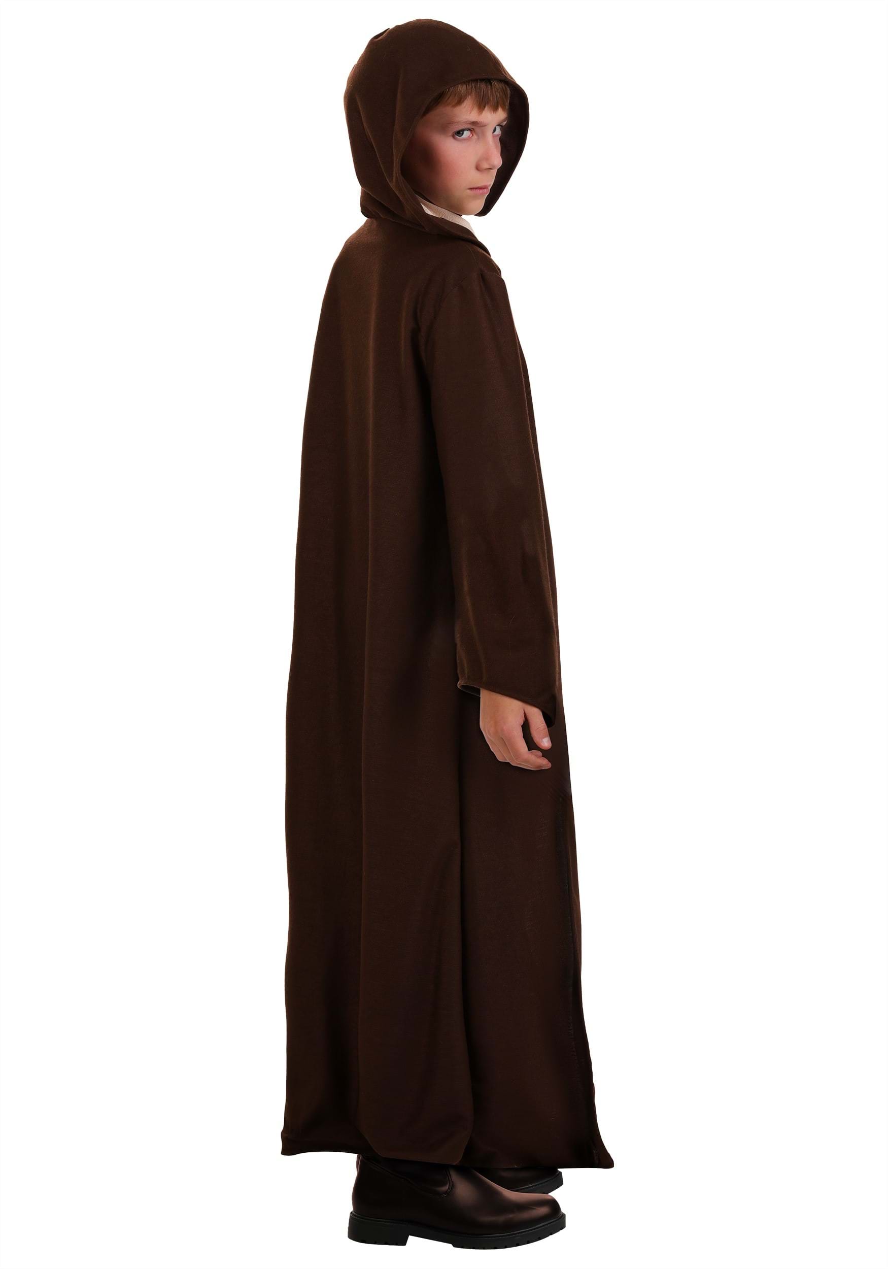 The robe is made from soft, dark brown jersey fabric that's perfect for serious Jedi business and serious playground action. The wide sleeves make for excellent lightsaber twirls, while the oversized hood adds just the right amount of mystery or extra space to stash Halloween candy. (Just saying). It's comfy, dramatic, and exactly what young space adventurers need to complete their transformation.