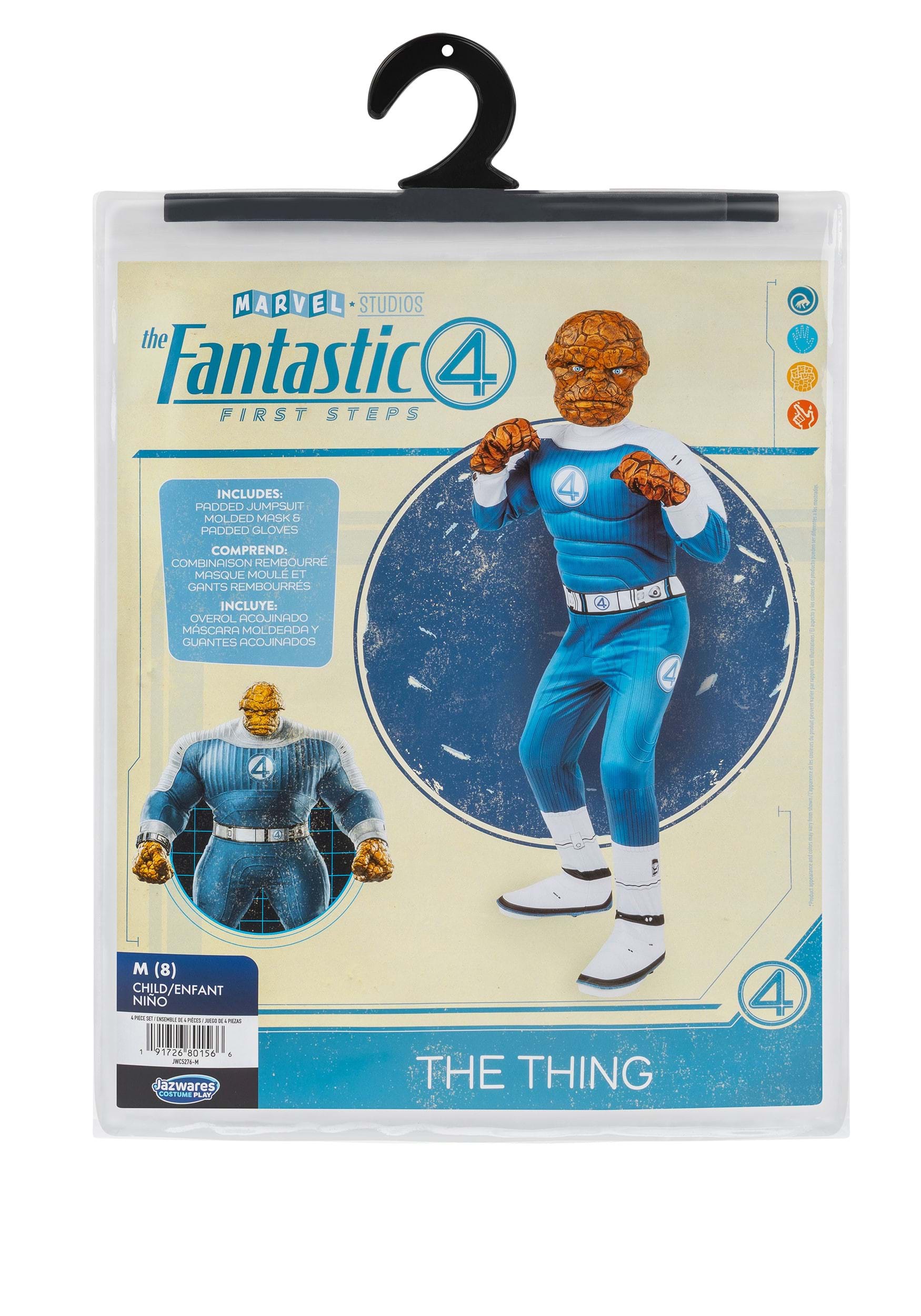 This officially licensed costume includes a full-body jumpsuit made of comfortable polyester fabric with printed details designed to replicate The Thing’s suit from Fantastic Four: First Steps. The jumpsuit features a blue design with muscle shading, the classic “4” insignia, and printed utility belt—all the stuff your kid needs to look like a card-carrying member of Marvel’s first family.