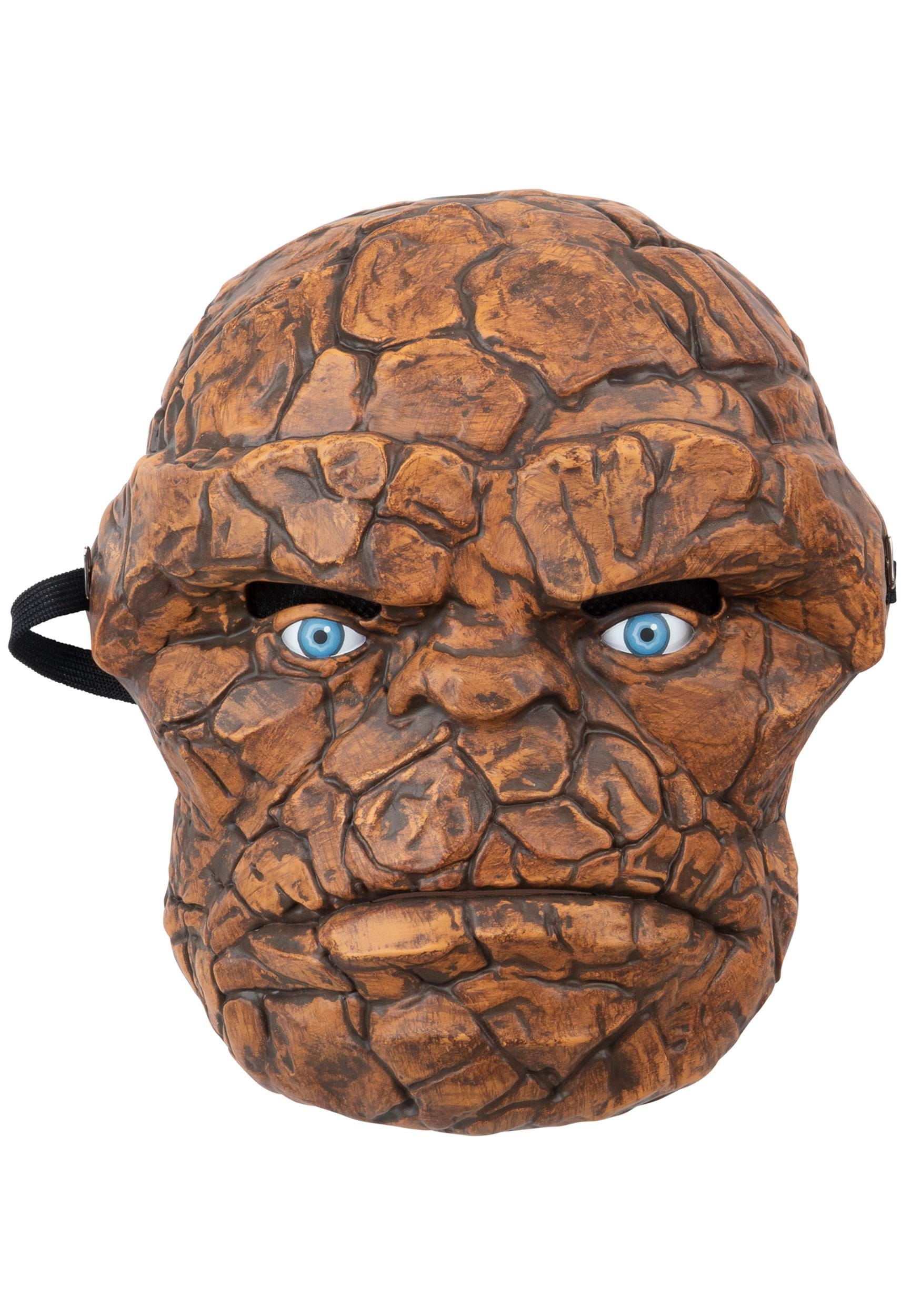 The back fastens easily, so suiting up doesn’t require a full team effort. The molded plastic mask captures Ben Grimm’s rocky face with sculpted texture and furrowed brows that say, “Yeah, I’ll lift the car again.” The elastic band in back helps keep it secure, even during serious clobbering activity.