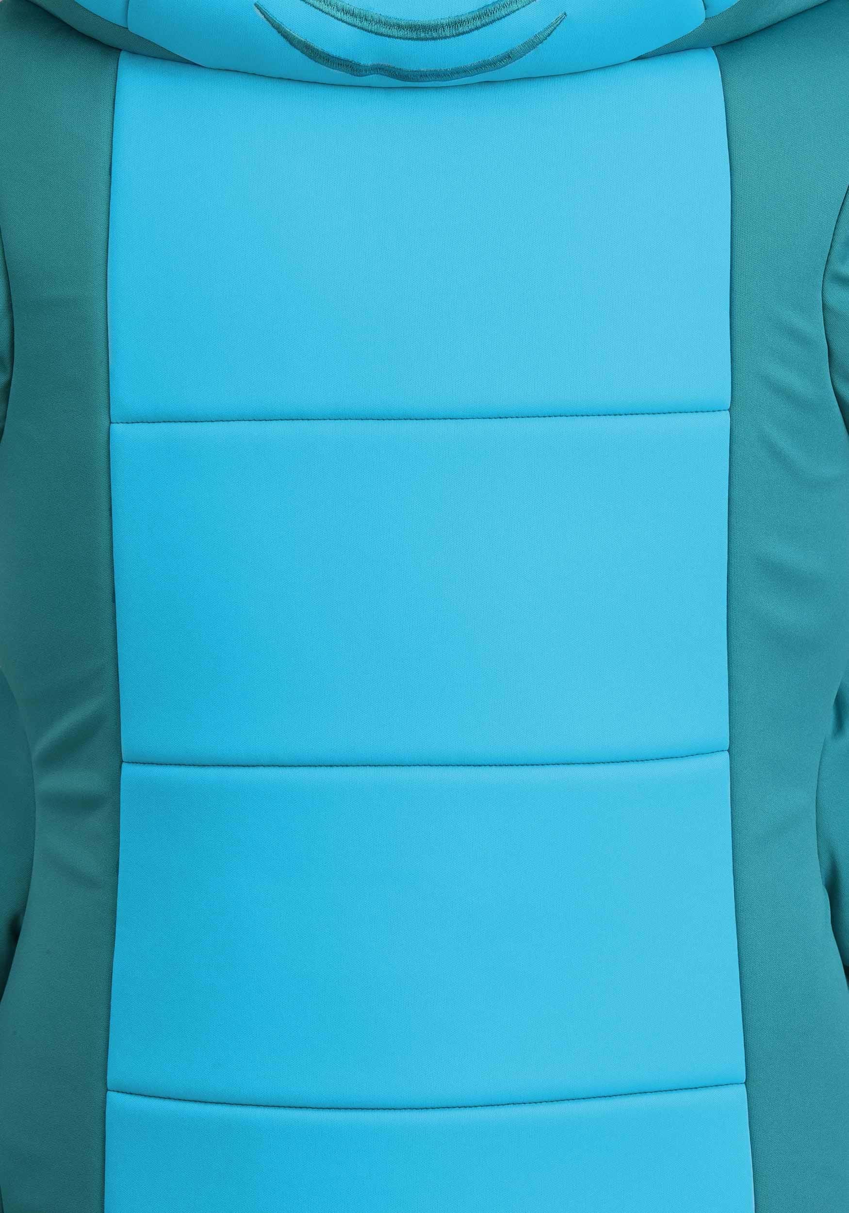 - Foam backed, jersey knit tunic has zipper down center back, has embroidered facial features, fiber filled nose, removeable mesh face piece secures with hook and loop fastener