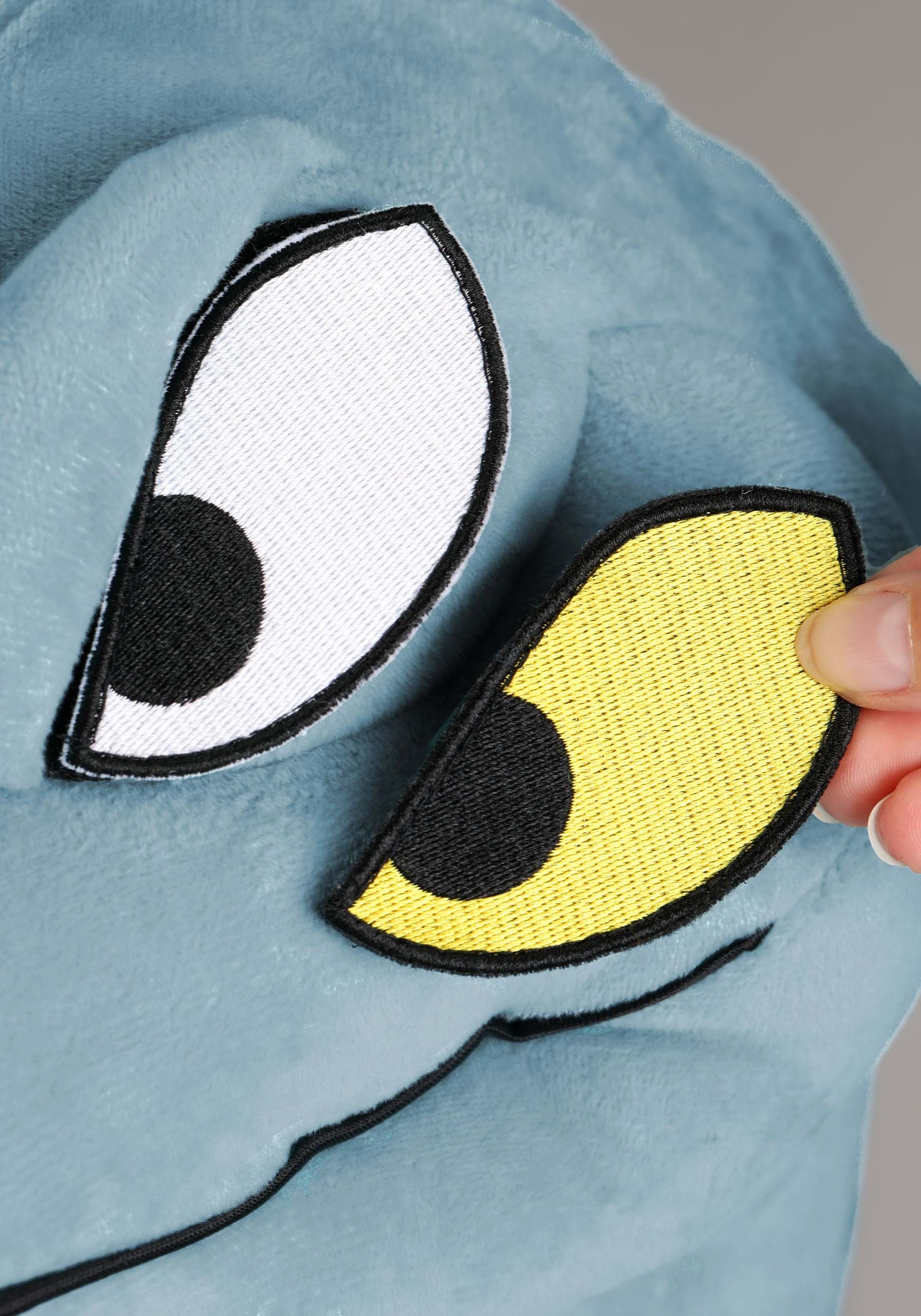 - 1 set of embroidered yellow eyes and 1 set of embroidered white eyes are interchangeable and secure with hook and loop fasteners
