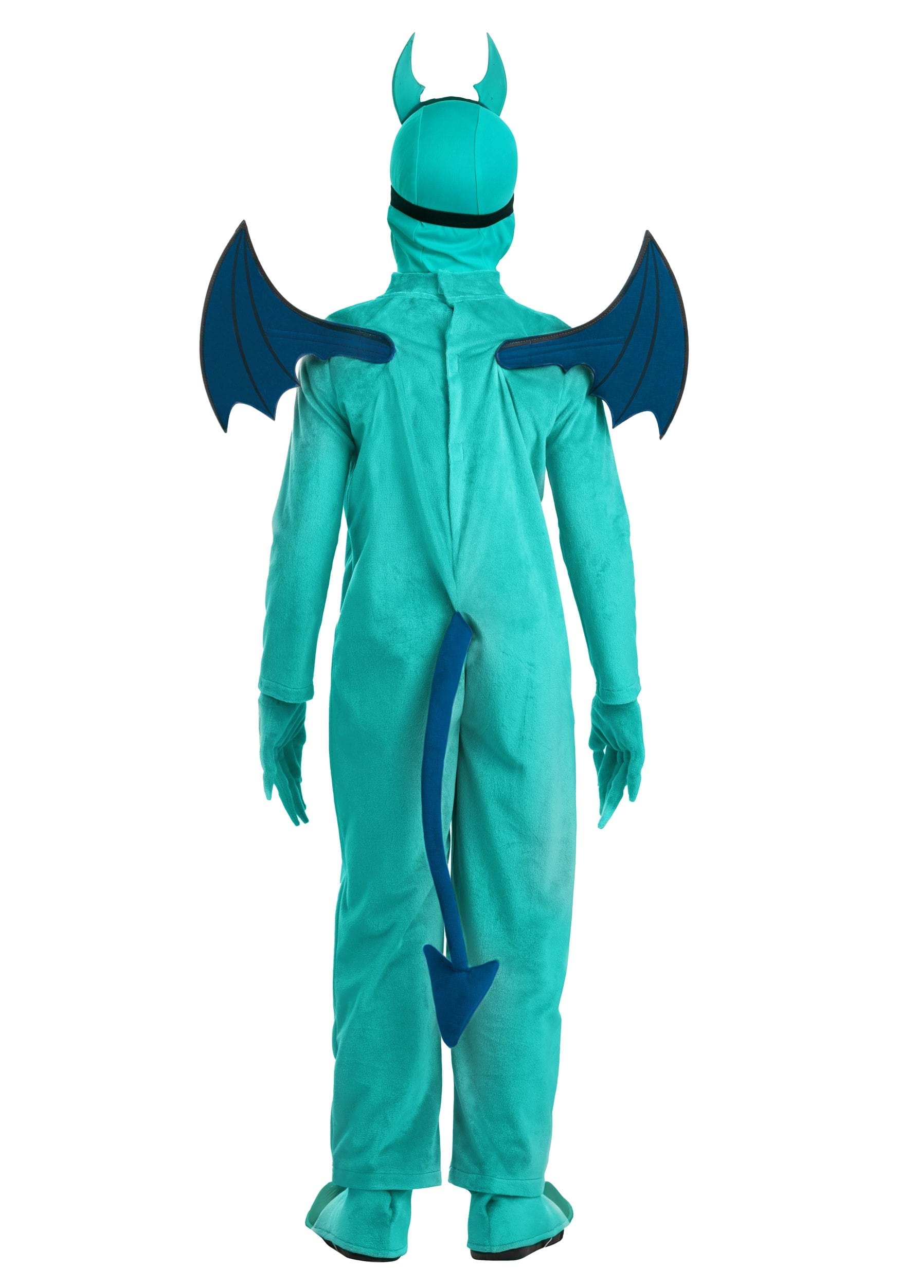 Channel the style of the shapeshifting imp with this Made By Us design! The teal velour jumpsuit is complete with structured felt wings and a stuffed tail attached for a full Panic look, fastening securely at the back. A knit cowl hood blends seamlessly under the neckline, while clawed gloves provide an authentic touch. Foam-backed foot covers with faux leather hooves ensure comfortable steps with elasticized support for easy wear and play.