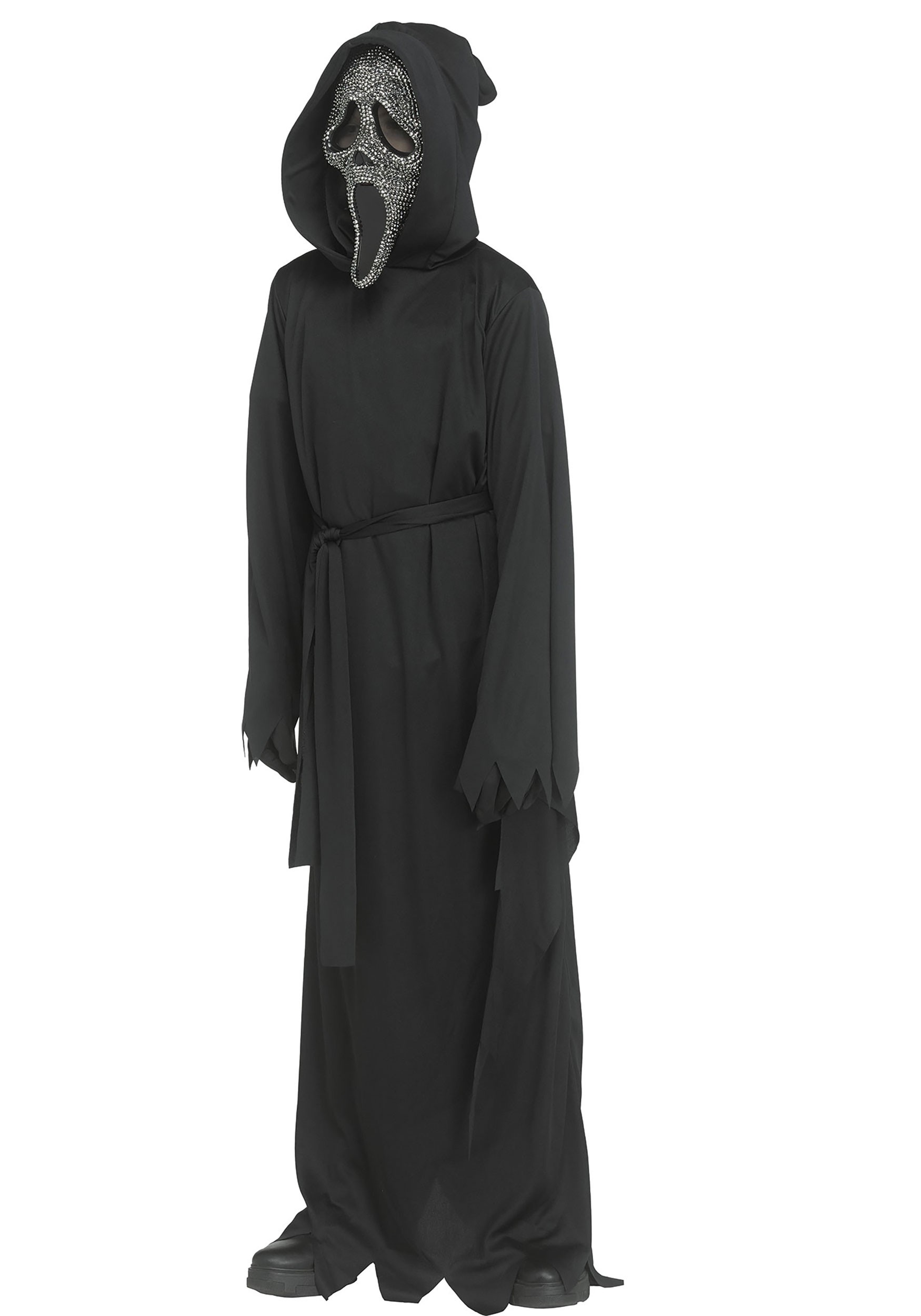 This is a Kid's Ghost Face Gun Powder Bling Costume.