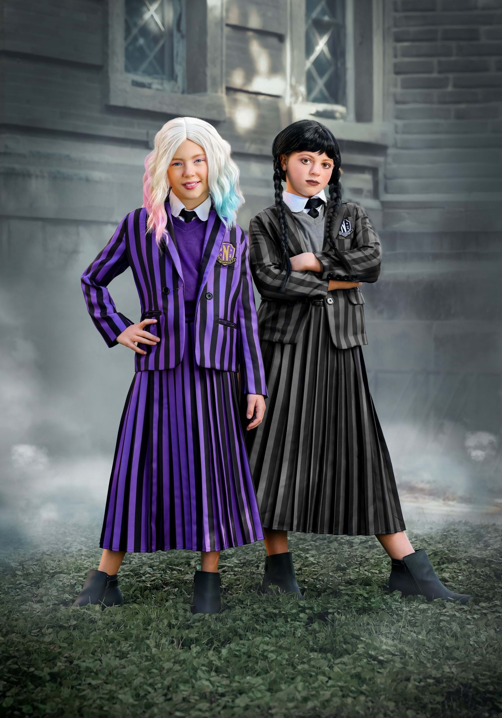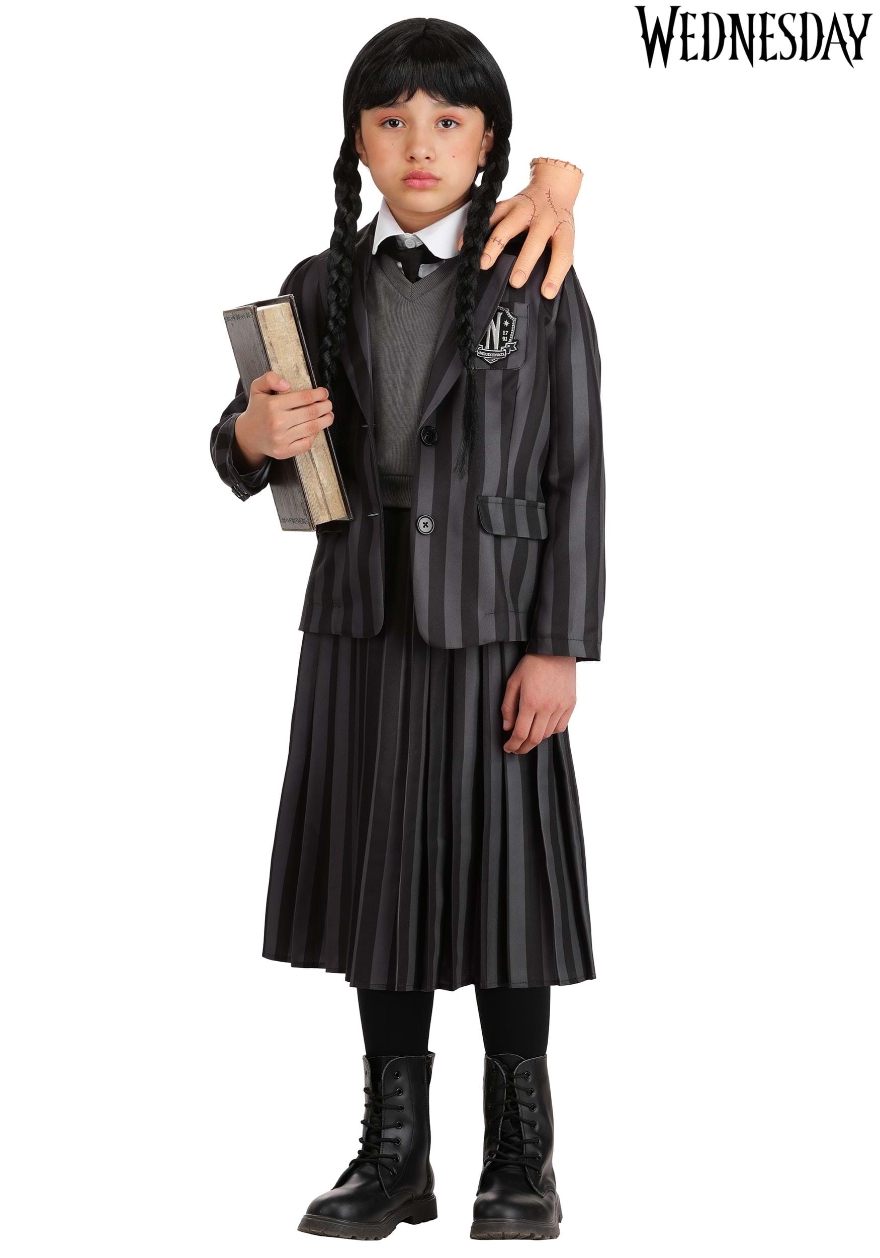 This Wednesday costume is a whole mood. Whether she's heading to a costume party, trick-or-treating, or just wants to feel like the most mysterious kid in homeroom, this Nevermore Academy look delivers all the macabre charm of the series. Just add braids, boots, and a well-timed stare.