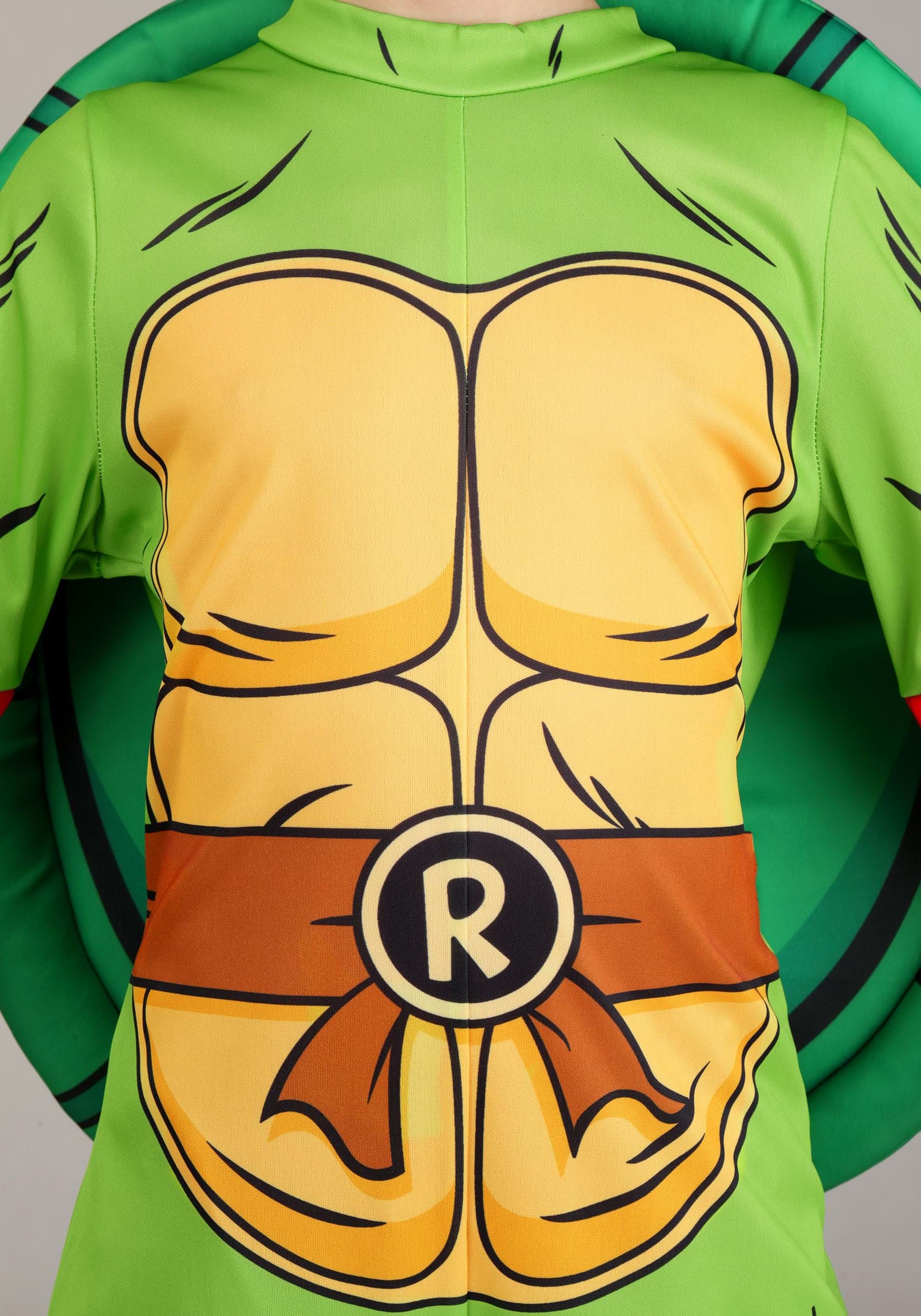 This officially licensed costume includes a full-body jumpsuit made from soft, flexible polyester. It zips up the back for easy changing (because even ninjas need fast costume breaks) and features bold printed graphics of Raphael’s front shell and “R” belt. Bright red accents on the wrists, elbows, and knees add comic-style punch, and printed line details bring that retro animation look to life.