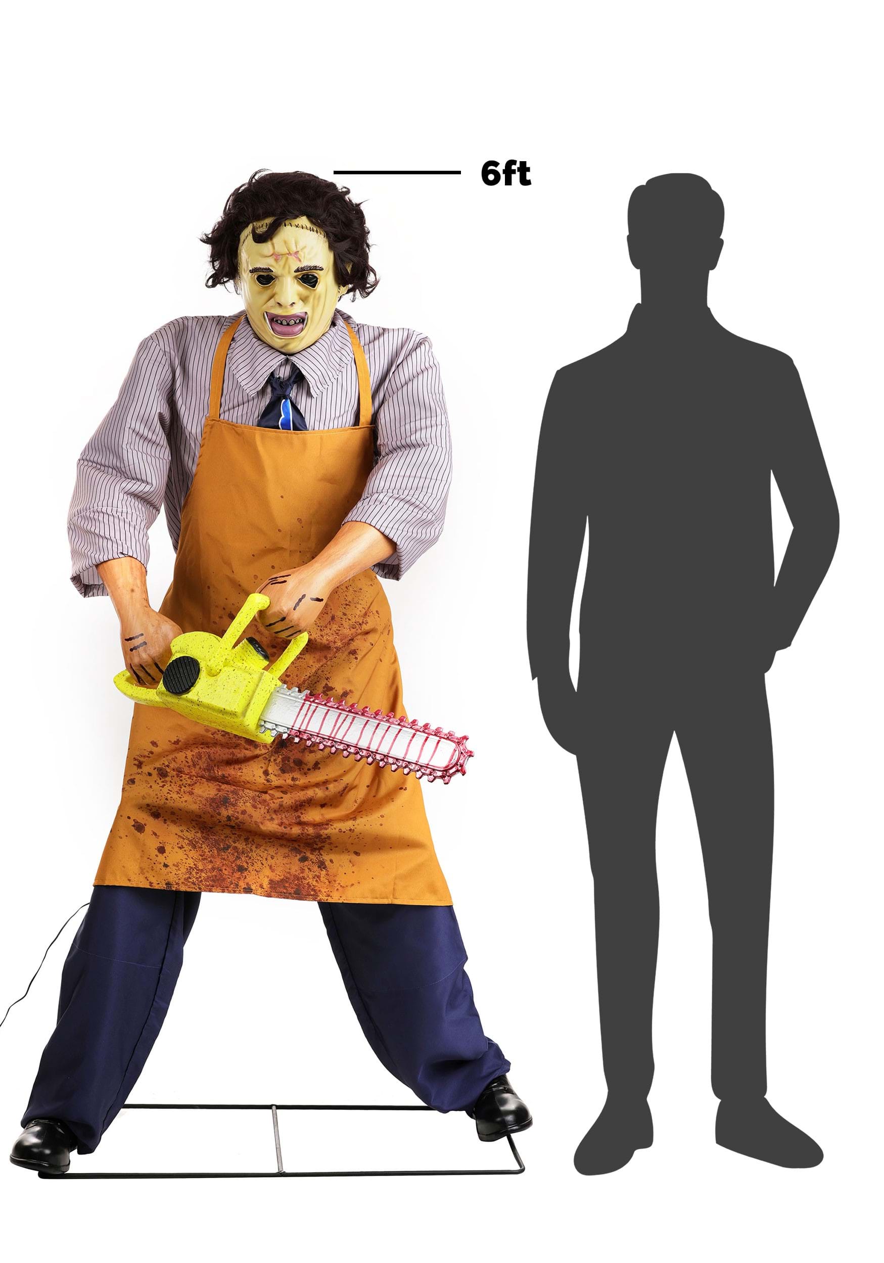 Looking for the centerpiece of your horror décor? This 6-Foot Leatherface delivers chainsaw-wielding chaos in the most blood-curdling way possible. Place him on your porch, in a dark hallway, or anywhere guests least expect a full-blown chainsaw solo. One thing’s for sure—your haunted setup will never be the same... and your guests definitely won’t forget it.