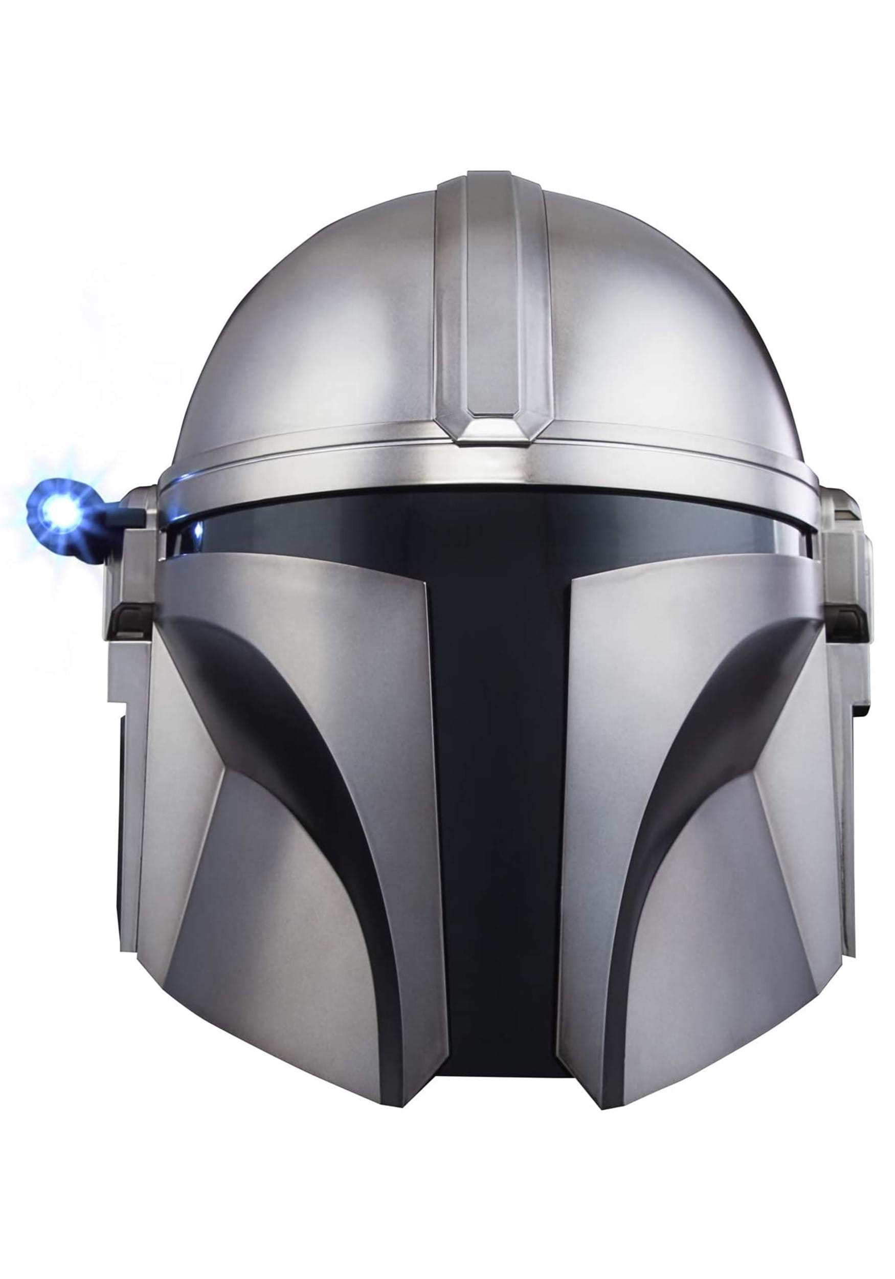 This is a Star Wars The Mandalorian The Black Series Electronic Helmet.