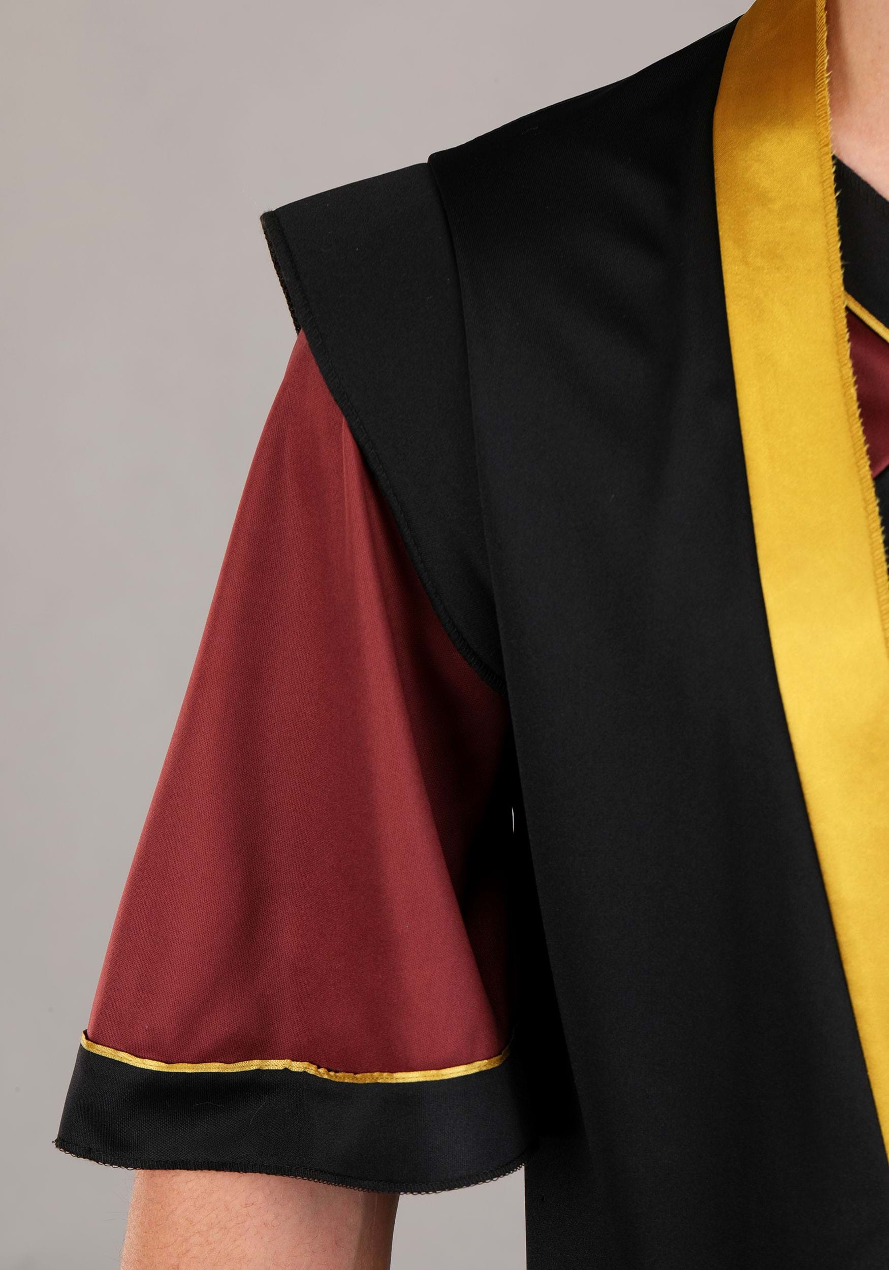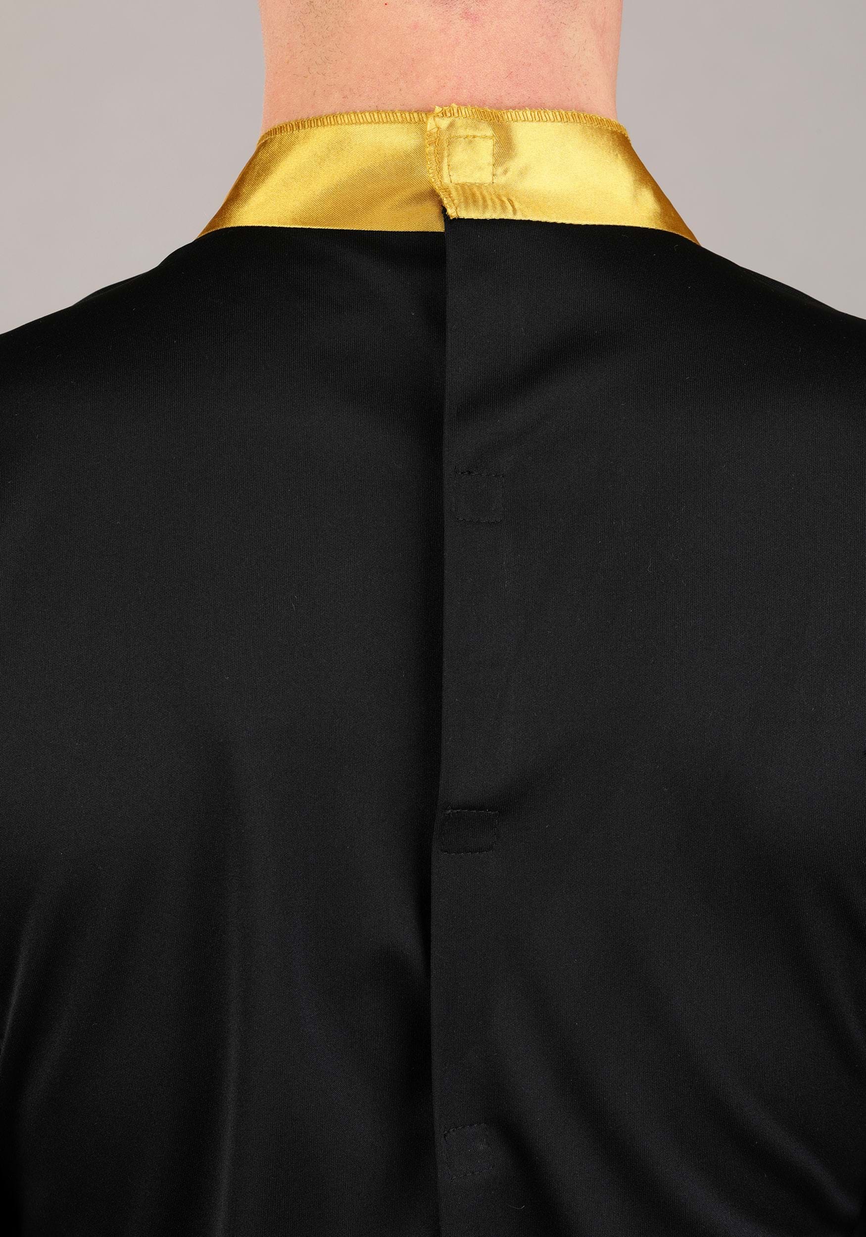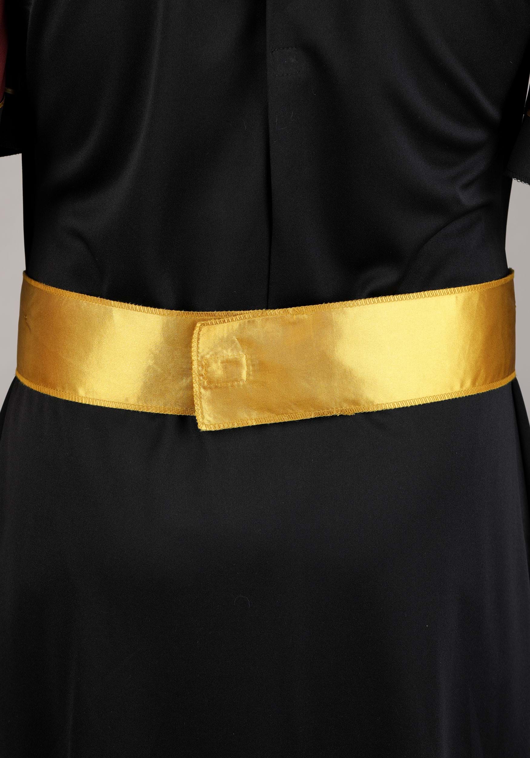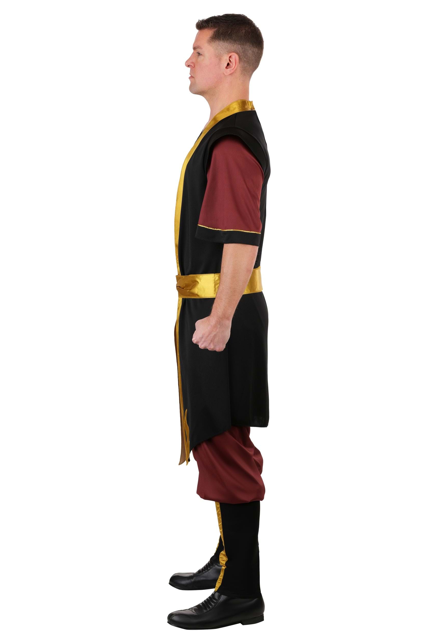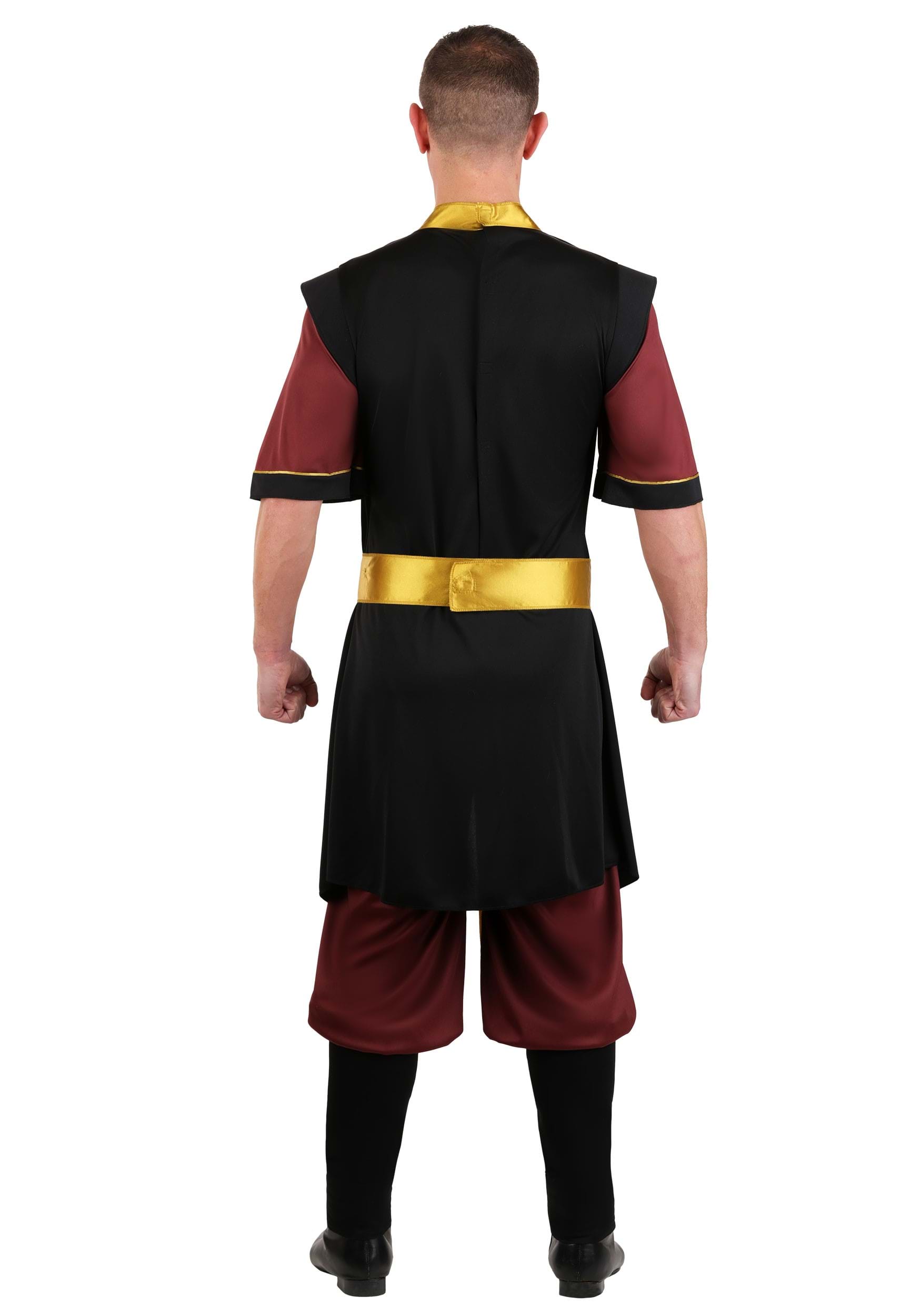 This deluxe outfit features a rich maroon underlayer with a black and gold tunic over top, complete with flame accents near the hem—because Zuko never met a subtle symbol he didn’t want to wear. Gold trim and a wide sash-style belt give it that royal fire nation flair, and the layered look adds depth, just like our favorite angsty fire prince.