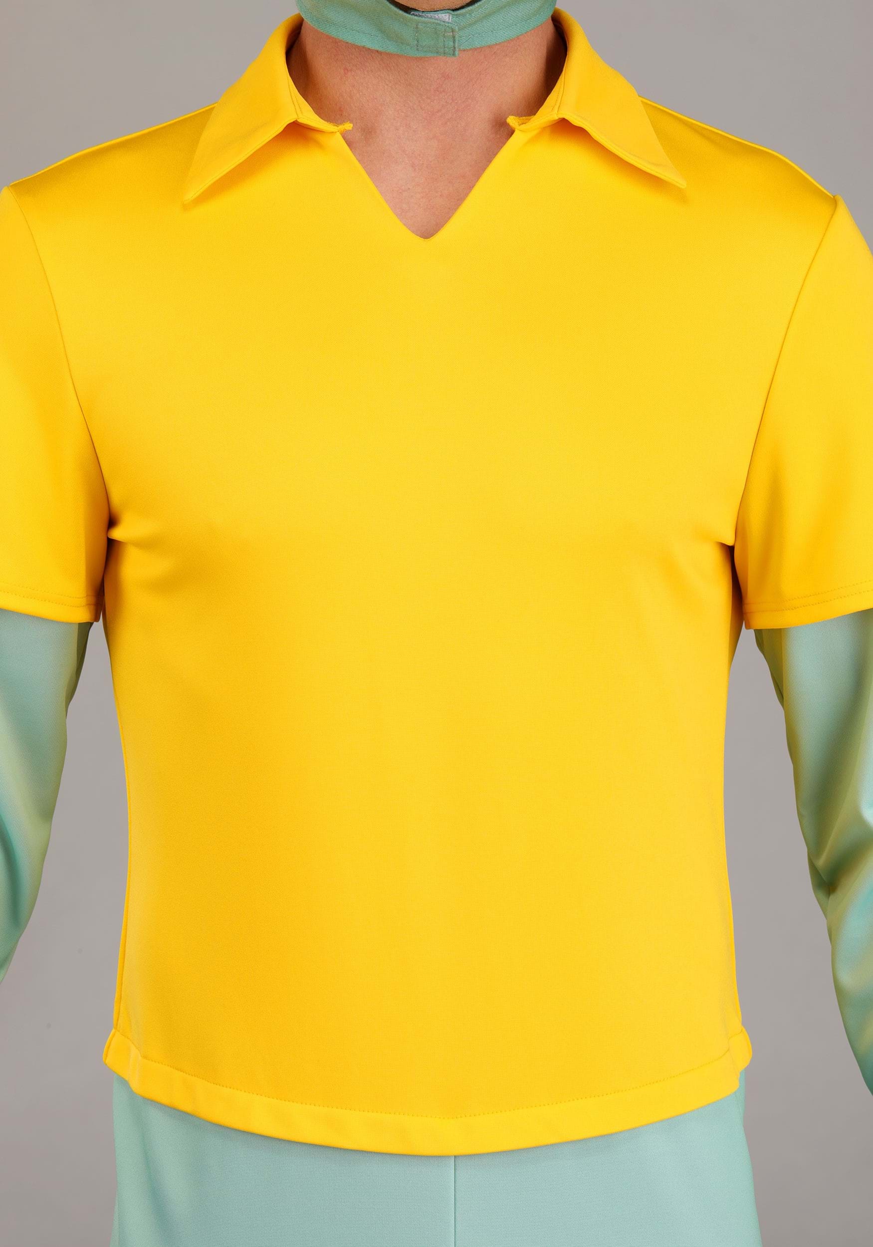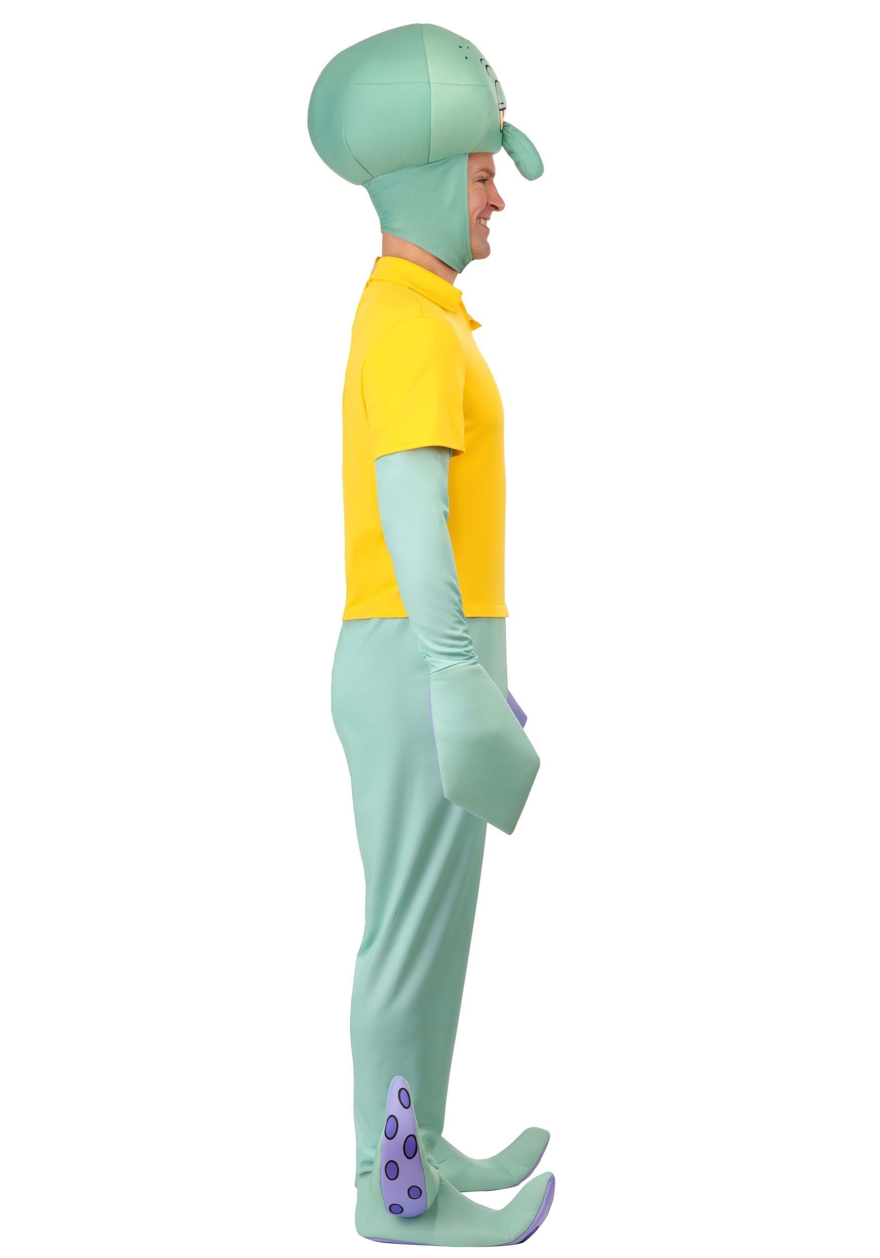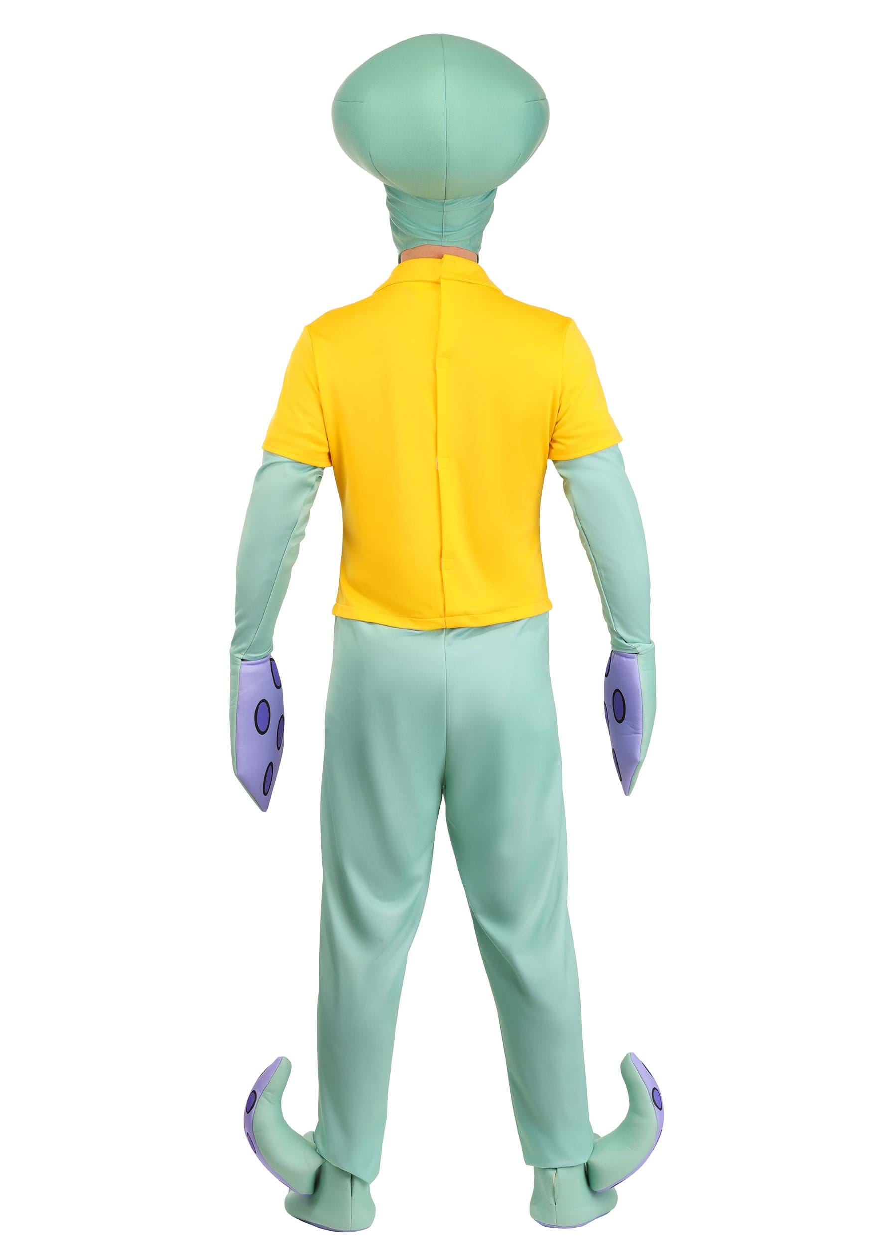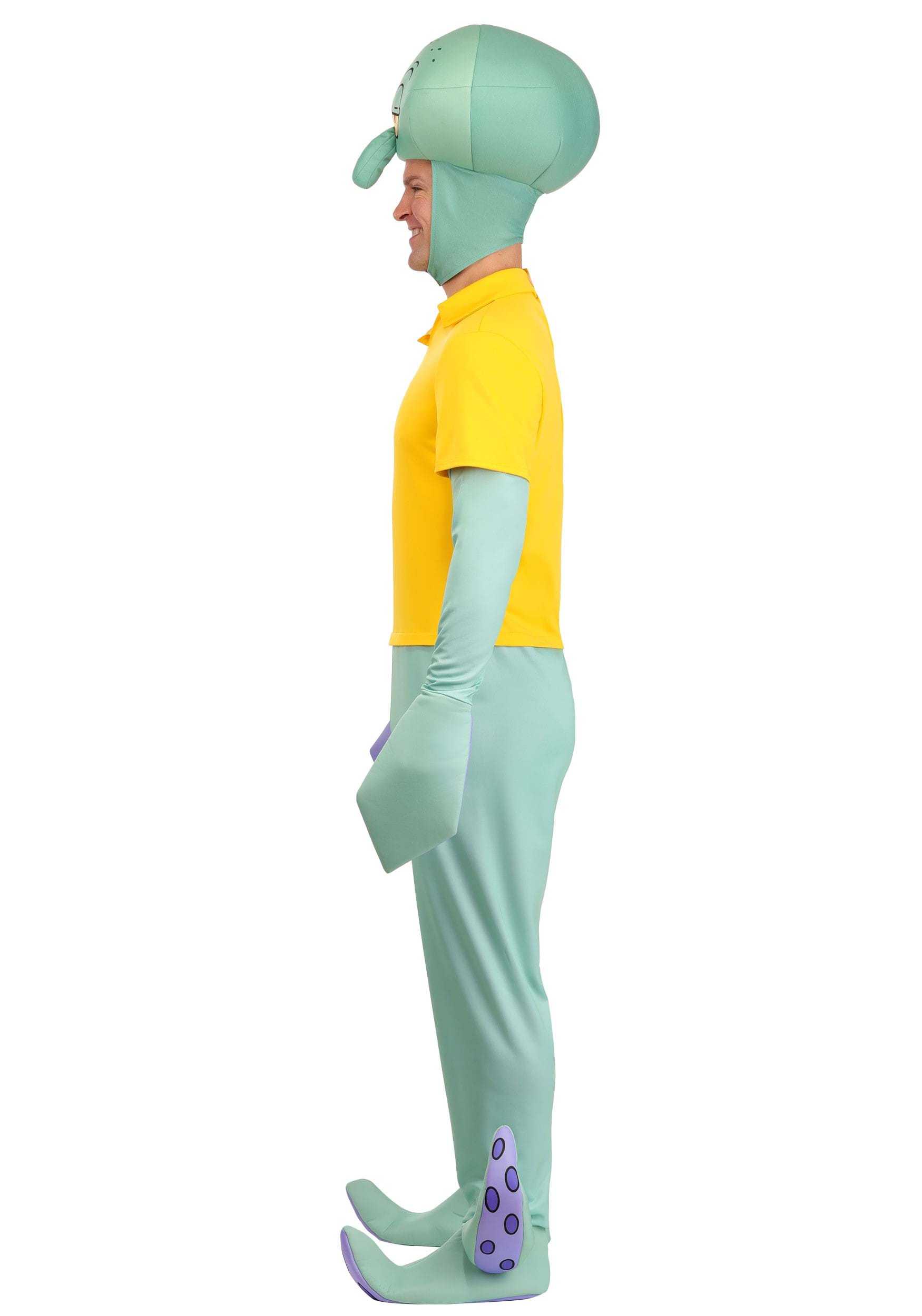 This deluxe costume transforms you into Squidward Tentacles with a full-body jumpsuit in seafoam green, complete with sculpted tentacle shoe covers and printed suction cup details on the arms and feet. The attached yellow shirt captures his unmistakably unimpressed office-casual style, because even underwater, business-casual disappointment is a thing.