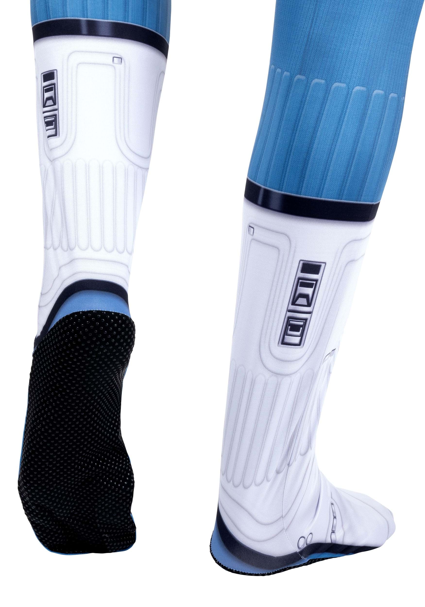 Made from a stretch-knit fabric that hugs your body like it's calculating pi to the millionth digit, this full-body suit includes enclosed hands and feet for that seamless superhero silhouette. Every inch is printed with the details from the Fantastic Four: First Steps movie version of Mr. Fantastic’s iconic uniform—right down to the white gloves, boots, and the classic "4" emblem.