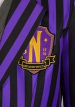 The set includes a purple-and-black striped blazer, a gray sweater vest, and a black tie—all the makings of a respectable Nevermore student with at least three secrets and one ghost problem. The blazer is made from a medium-weight twill and features a stitched Nevermore crest on the chest, plus flap pockets in case you need somewhere to stash your spellbook or maybe just snacks.