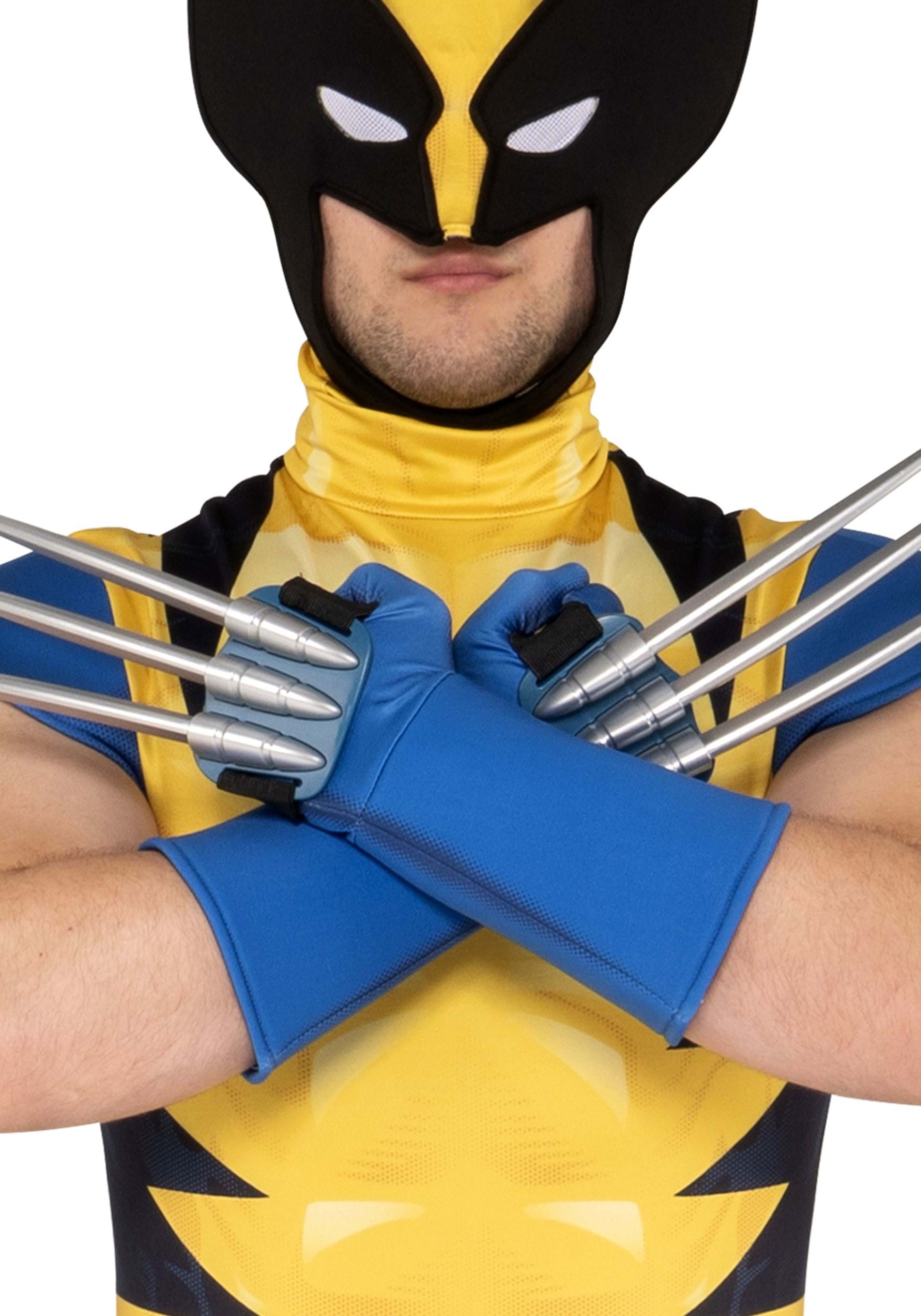 The included mask leaves the mouth open (perfect for gritting your teeth or yelling “Bub”) and features tall, pointed black ears that make Wolverine instantly recognizable. Blue gloves come with removable claw accessories, so you can strike that signature crossed-arms pose with ease.