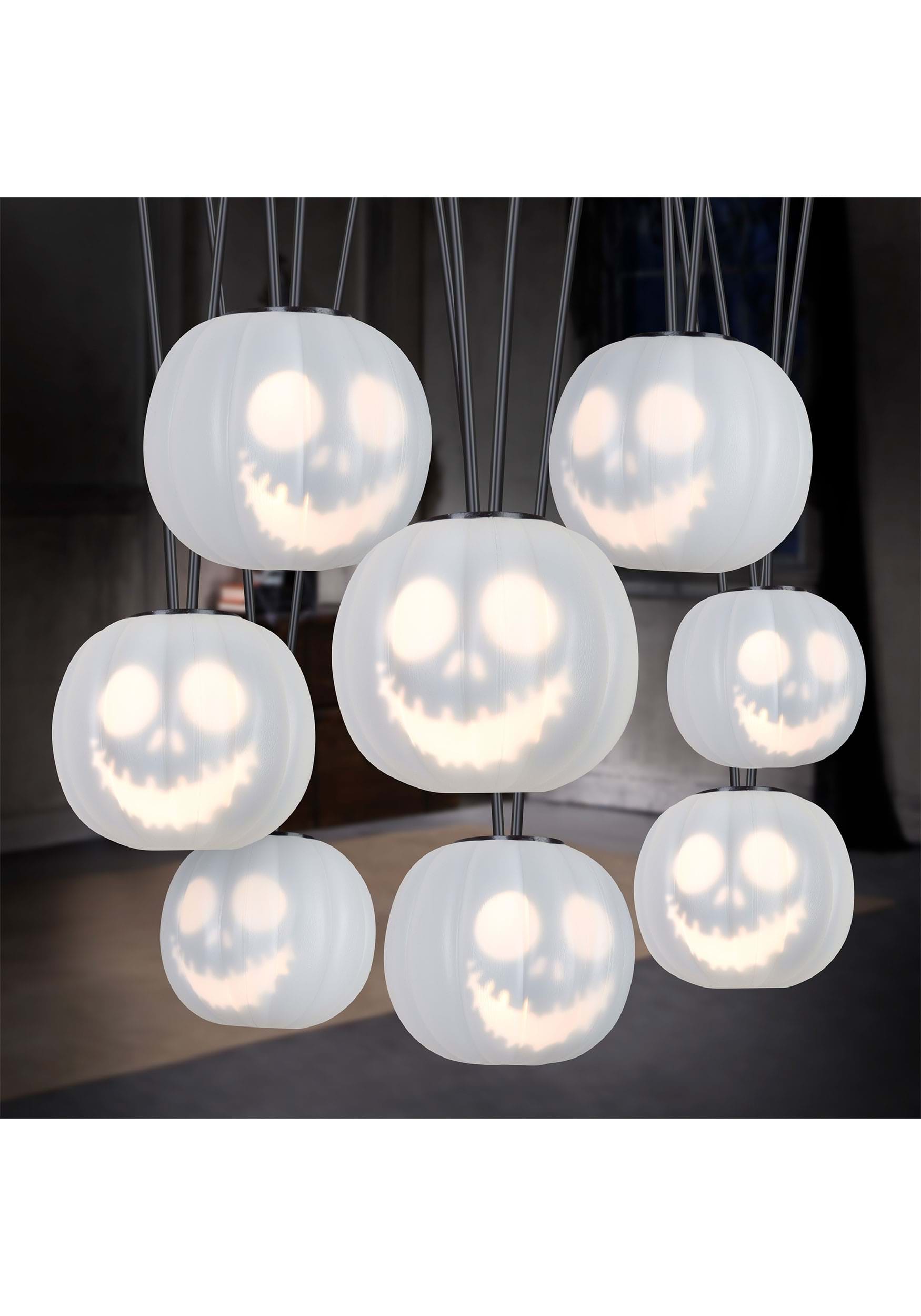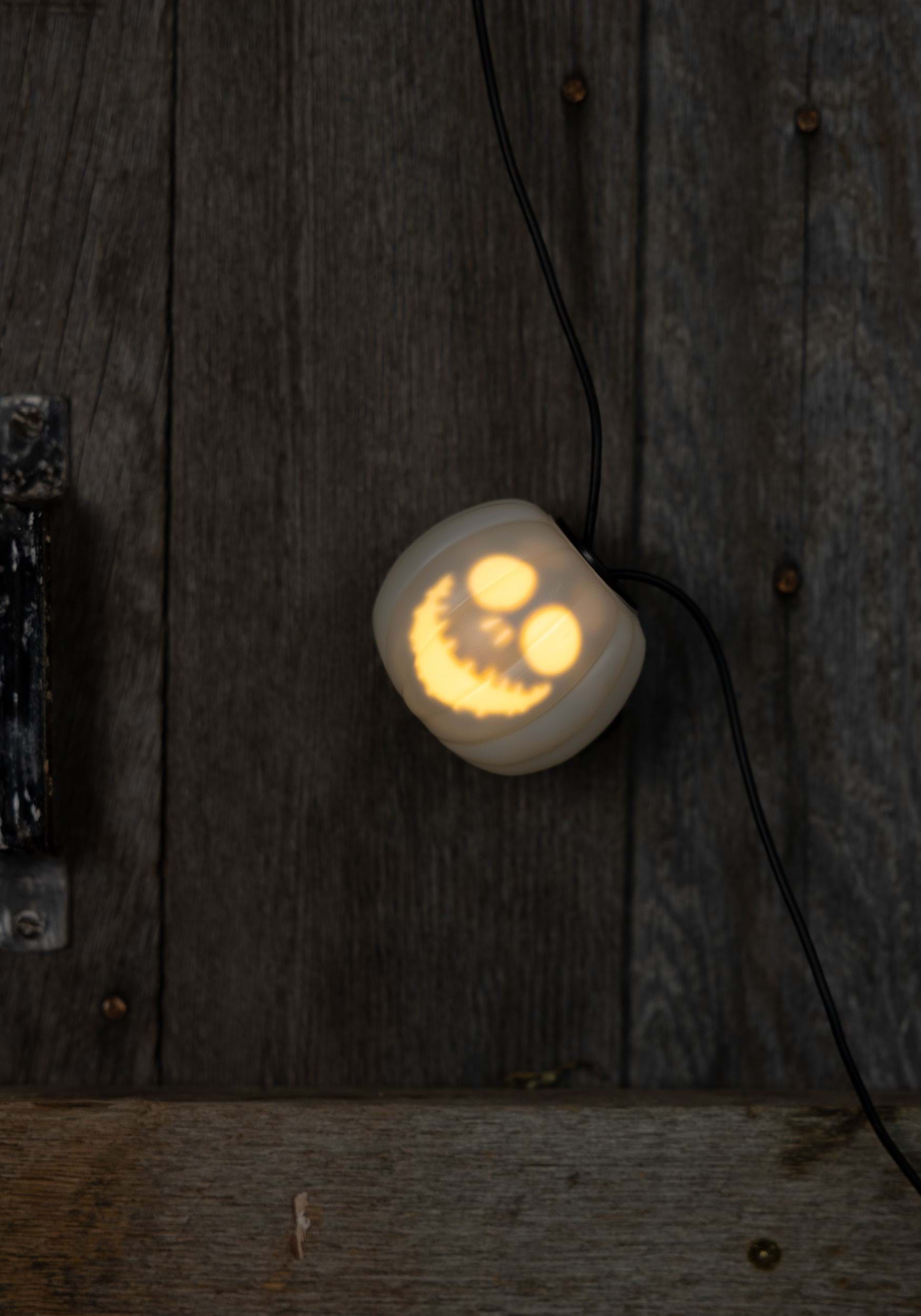 This officially licensed light string features eight translucent white pumpkin bulbs, each illuminated from within by a soft light that brings Jack Skellington’s iconic grin to life. Each bulb hangs from a dual black cord, adding a floating, ghostly look to your décor setup while keeping the aesthetic perfectly creepy.