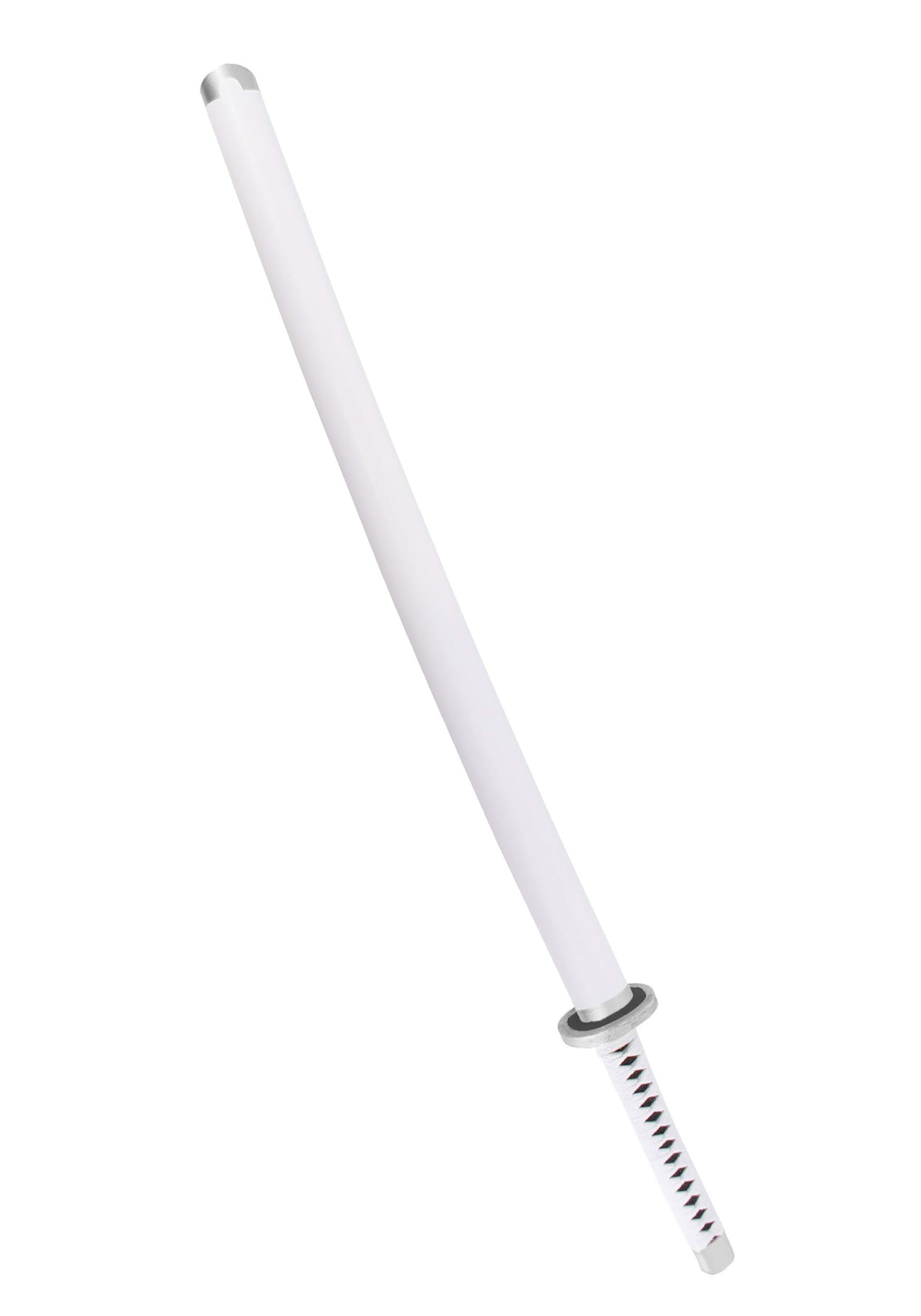 The hilt is wrapped in white with black accents, just like Zoro’s most treasured sword, and capped with metallic gold-colored accents on both the handle and guard. The included white scabbard matches the clean, elegant design of the sword itself and completes the look with more golden detail at both ends. It’s easy to carry, easy to pose with, and instantly recognizable to One Piece fans.