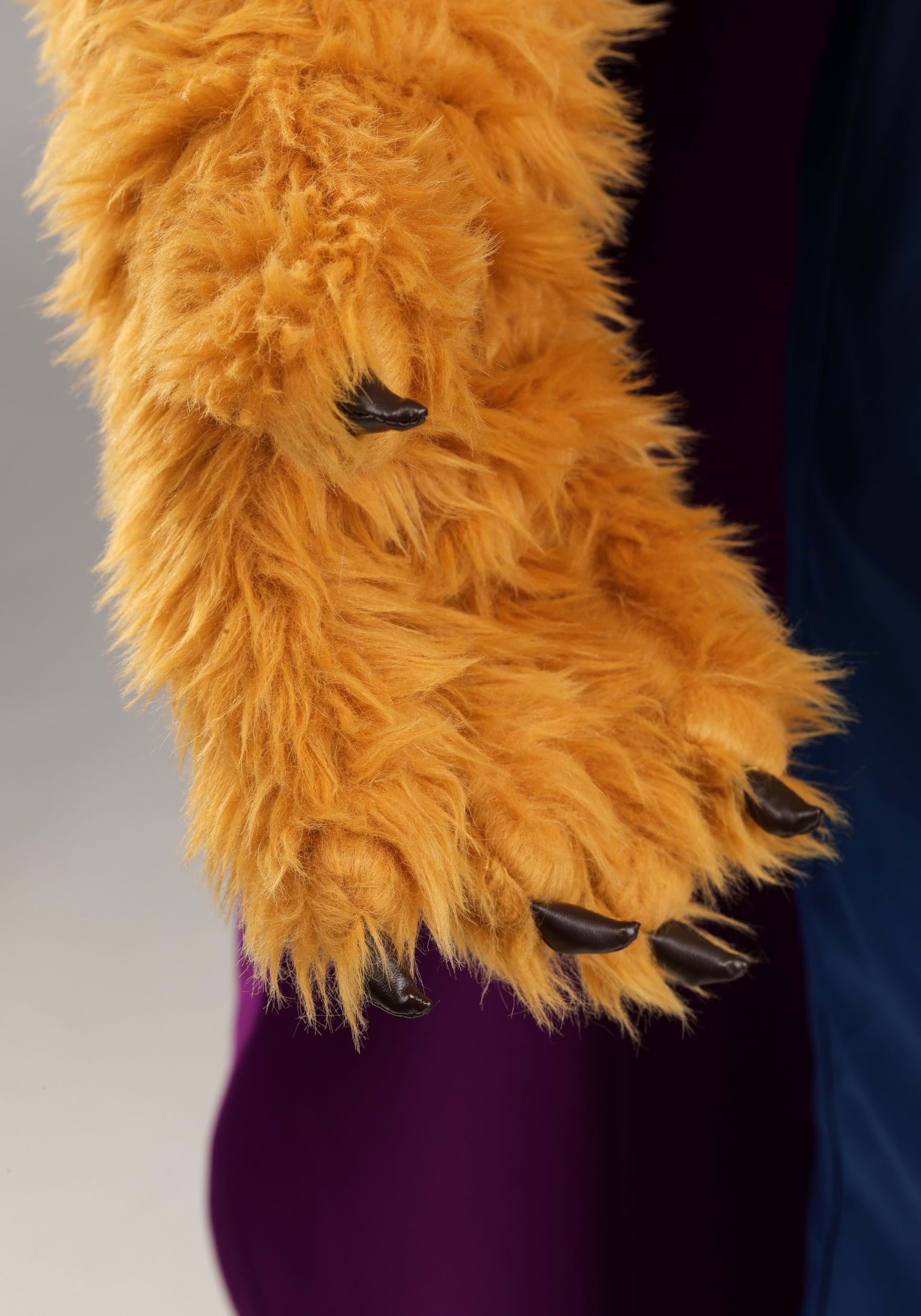 The fur-covered gloves and shoe covers secure with elastic cuffs, complete with faux leather claws. The mouth-mover mask, with interior padding and elastic straps shifts as you speak. Small eye openings subtly limit vision, enhancing the illusion and completing the look.