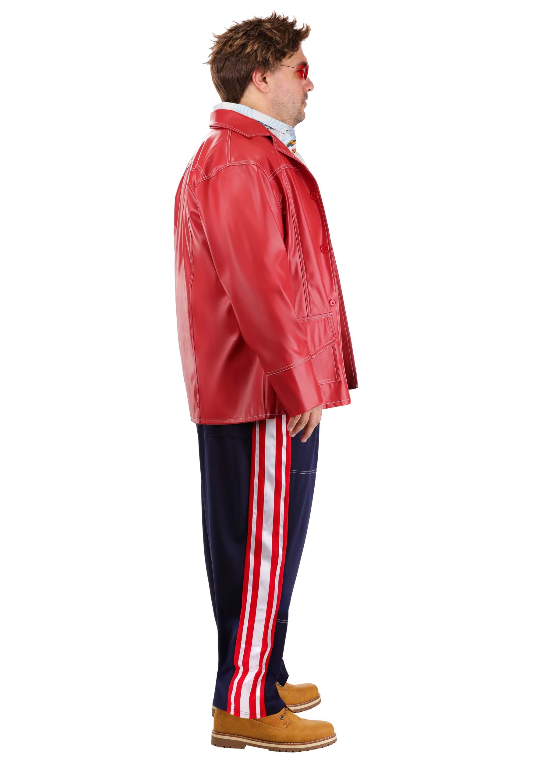 And then there's the deep red, faux leather jacket. It's the kind of power move that makes people listen when you speak, even if you're just talking about homemade soap. The red-tinted sunglasses seal the deal, giving you that signature Durden intensity (without the commitment to full-blown anarchy). Slip it on, and suddenly, you're the most interesting person in the room.