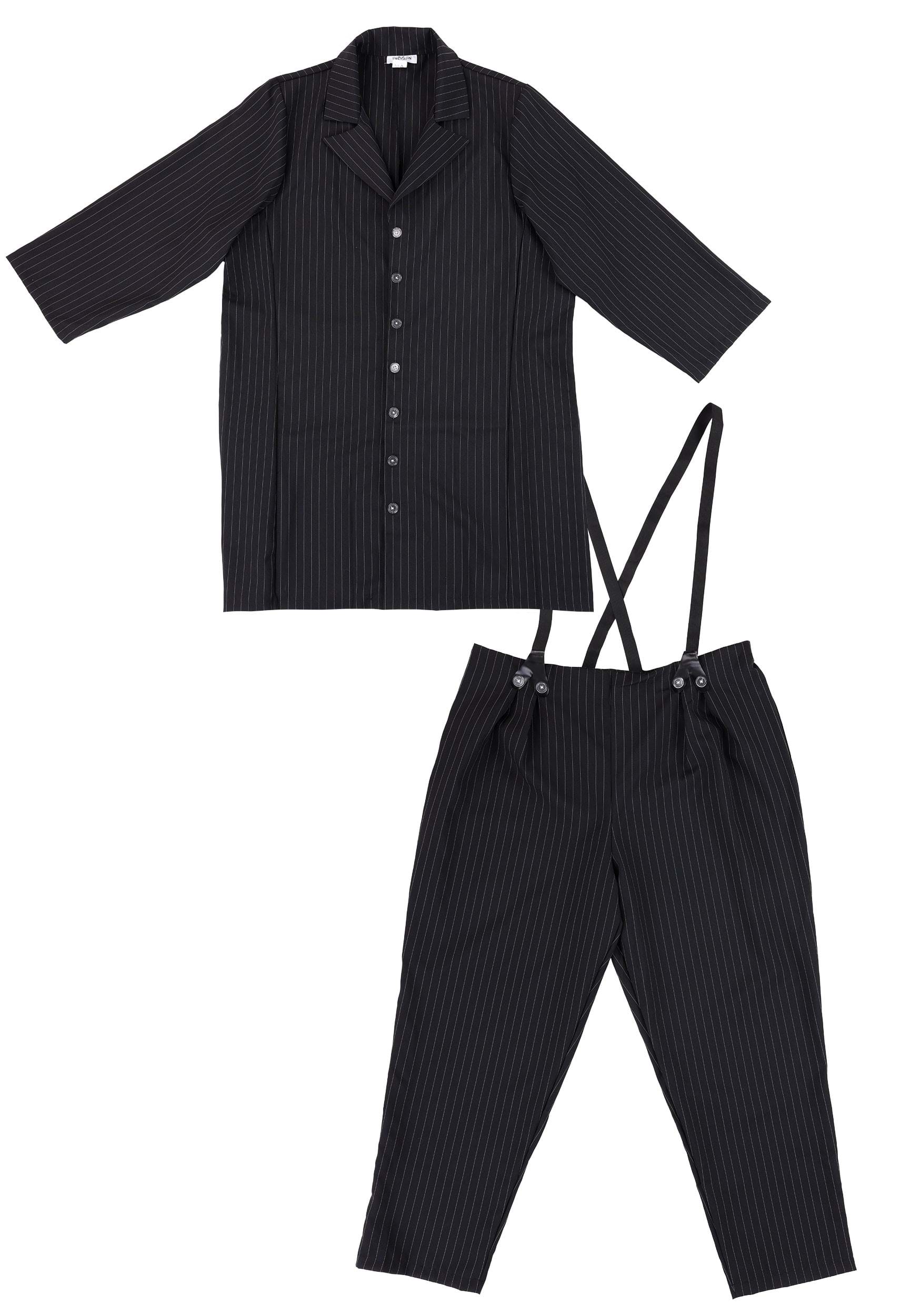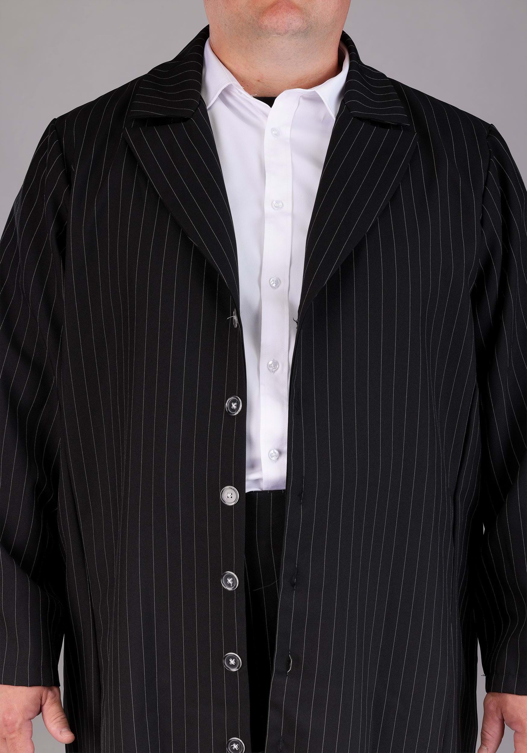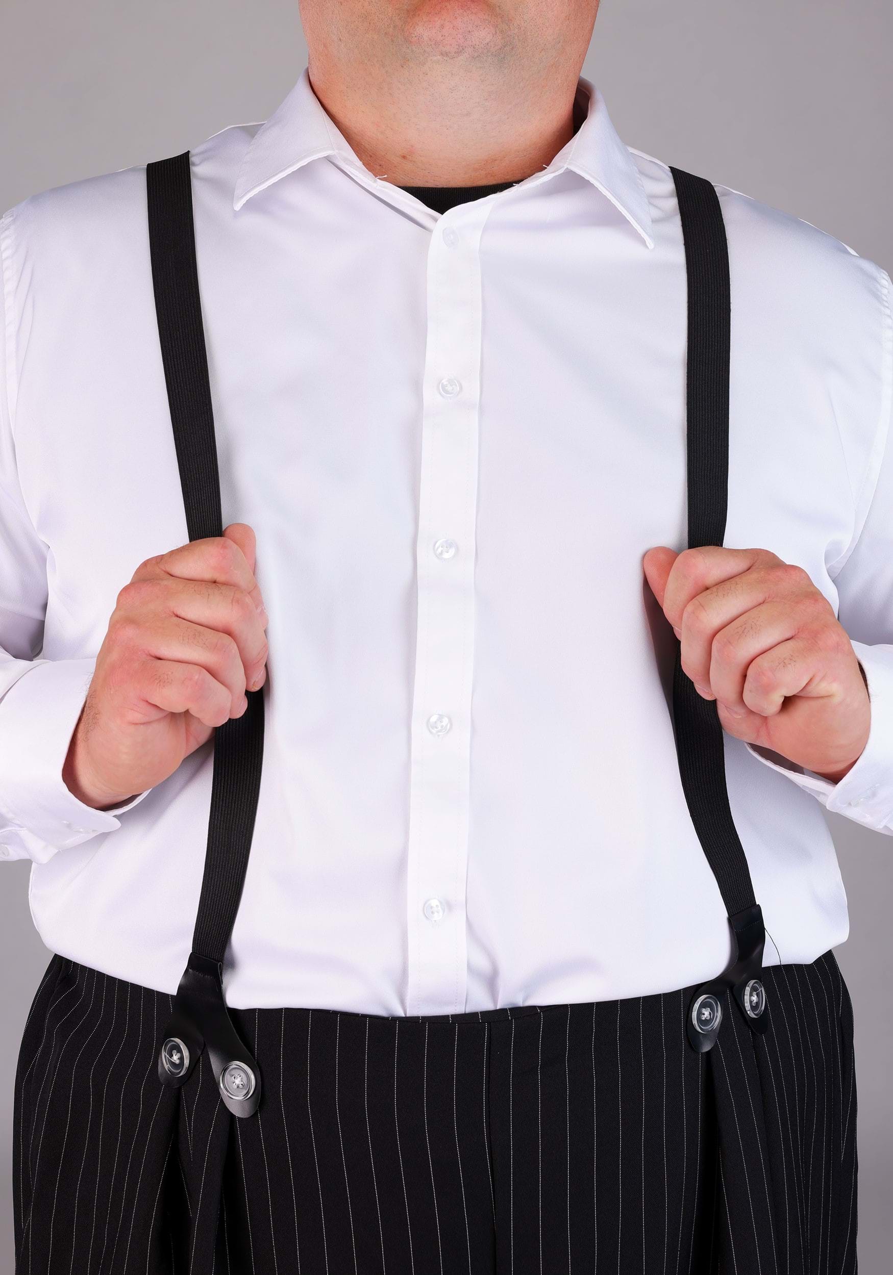 Boy, don't you look sharp! You will look spiffy in this cool Plus Size Zoot Suit Costume. You'll look like a true gangster from the 1920s. The attached suspenders complete the whole retro look. This dapper gangster costume starts with the polyester poplin black jacket that has white pinstripes. The jacket’s wide lapels and center-front buttons make for a detailed look. Not to mention the knee-length jacket makes quite the statement when you walk into any room. The pinstriped pants have an elastic back waistband with attached elastic suspenders for a comfortable fit that’s ready for the dance floor! We also have a ton of sizes, so you’re sure to find one that will fit you perfectly this Make a great couples' costume with this suit by pairing it with a flapper costume.