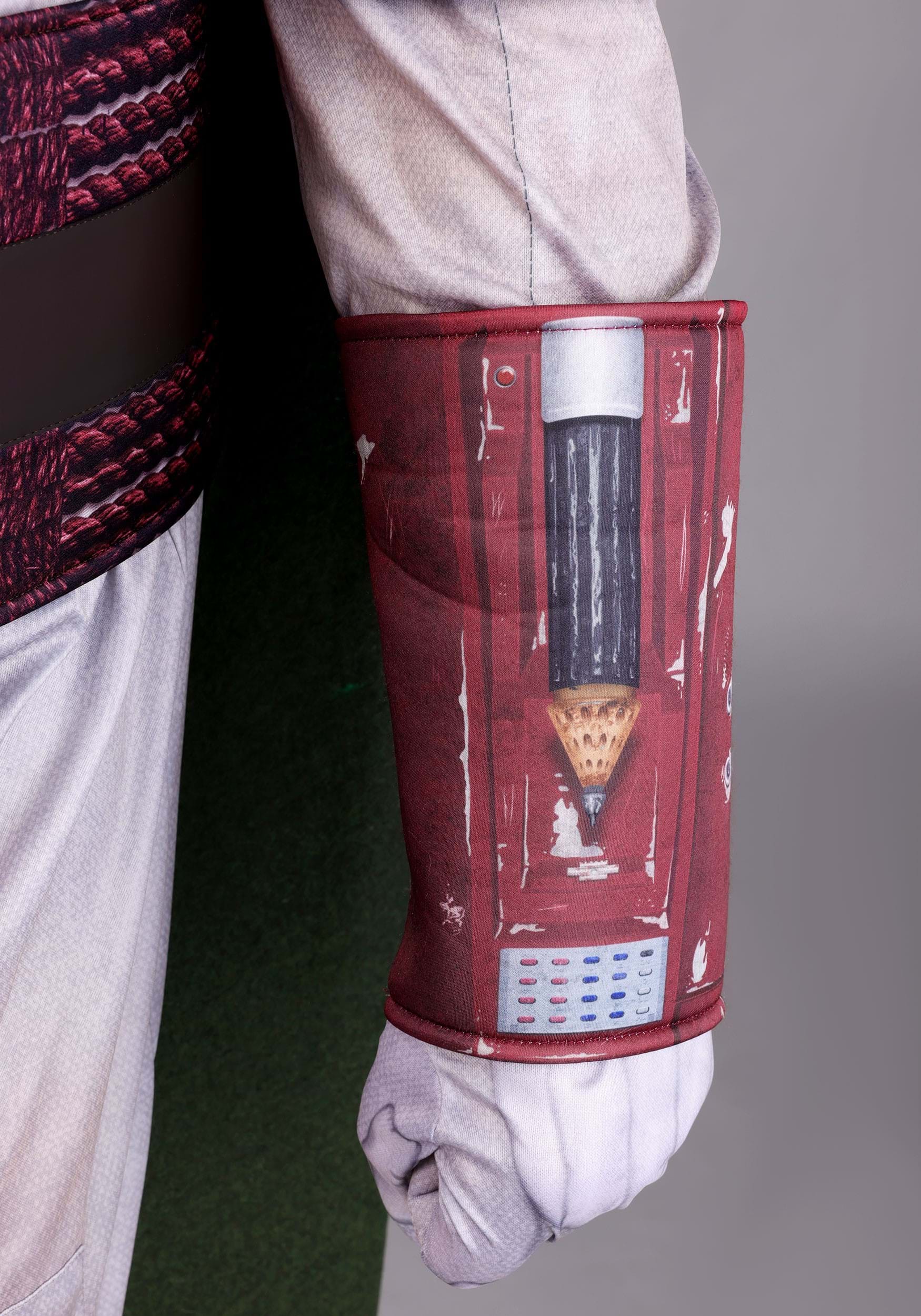 The costume also comes with gloves and a soft hood, both equipped with elastic and hook-and-loop fasteners to keep your gear locked in and ready for action. A faux leather belt is built right in, featuring open pouches for whatever a modern Mandalorian might need. Last, sewn-on faux pouches along the legs add extra bounty flair.